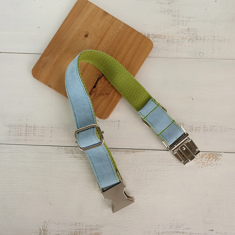 Nombre del producto: Collar personalizado para perros, correas a juego, nombre de identificación personalizado, hebilla de contacto, collares ajustables de terciopelo suave Multicolor para mascotas