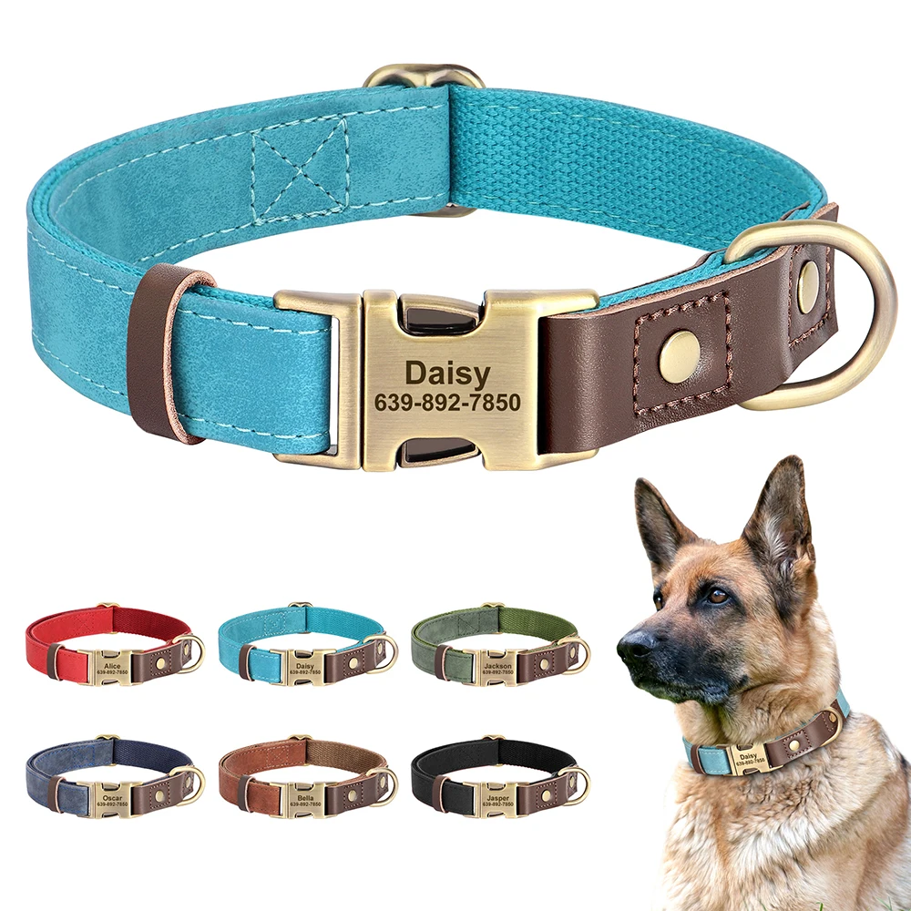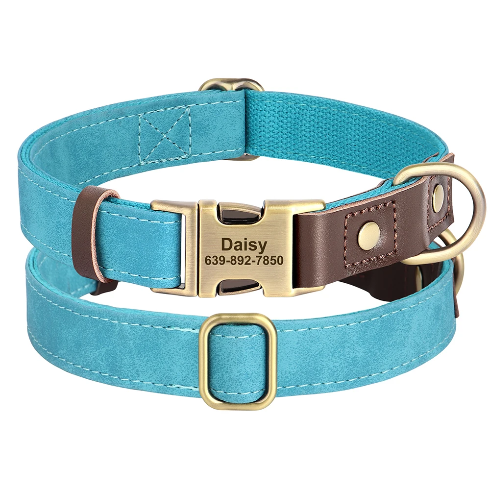 Collar personalizado de cuero PU para perros, collares personalizados para perros, collar de identificación de mascota grabado gratis para perros pequeños, medianos y grandes, BulldogMaterial: nailon + cuero PU