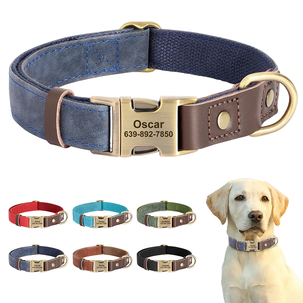 Collar personalizado de cuero PU para perros, collares personalizados para perros, collar de identificación de mascota grabado gratis para perros pequeños, medianos y grandes, BulldogMaterial: nailon + cuero PU