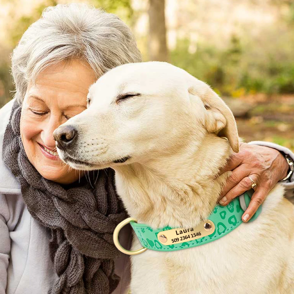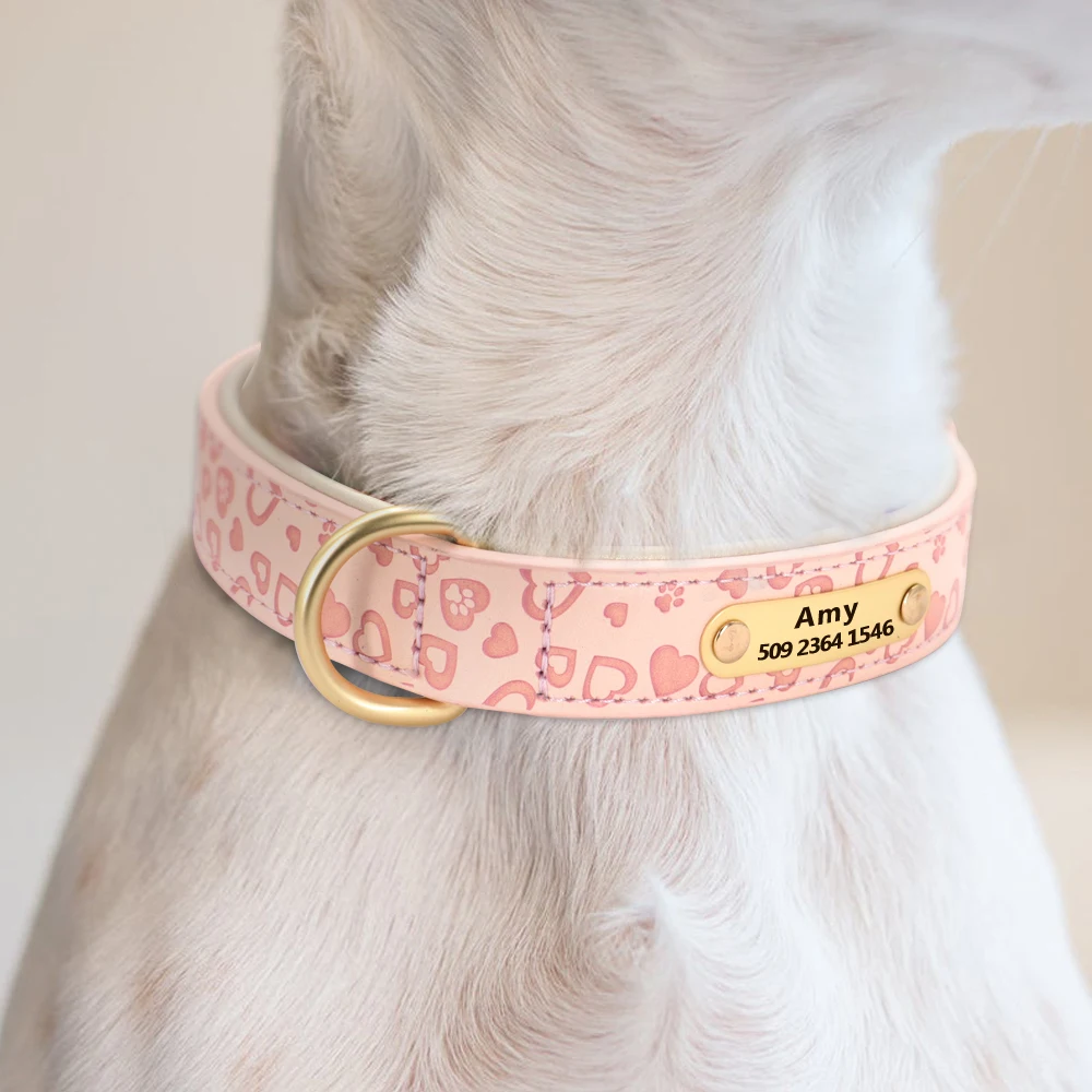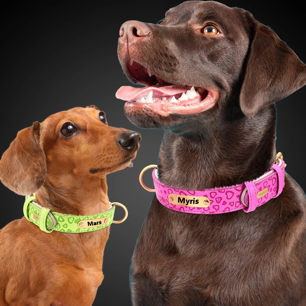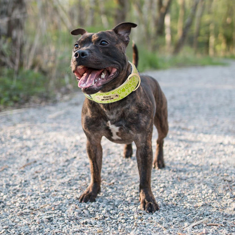 Collar de perro personalizado de cuero suave, Collar de cachorro personalizado, collares Pitbull estampados, productos para mascotas para perros pequeños, medianos y grandes