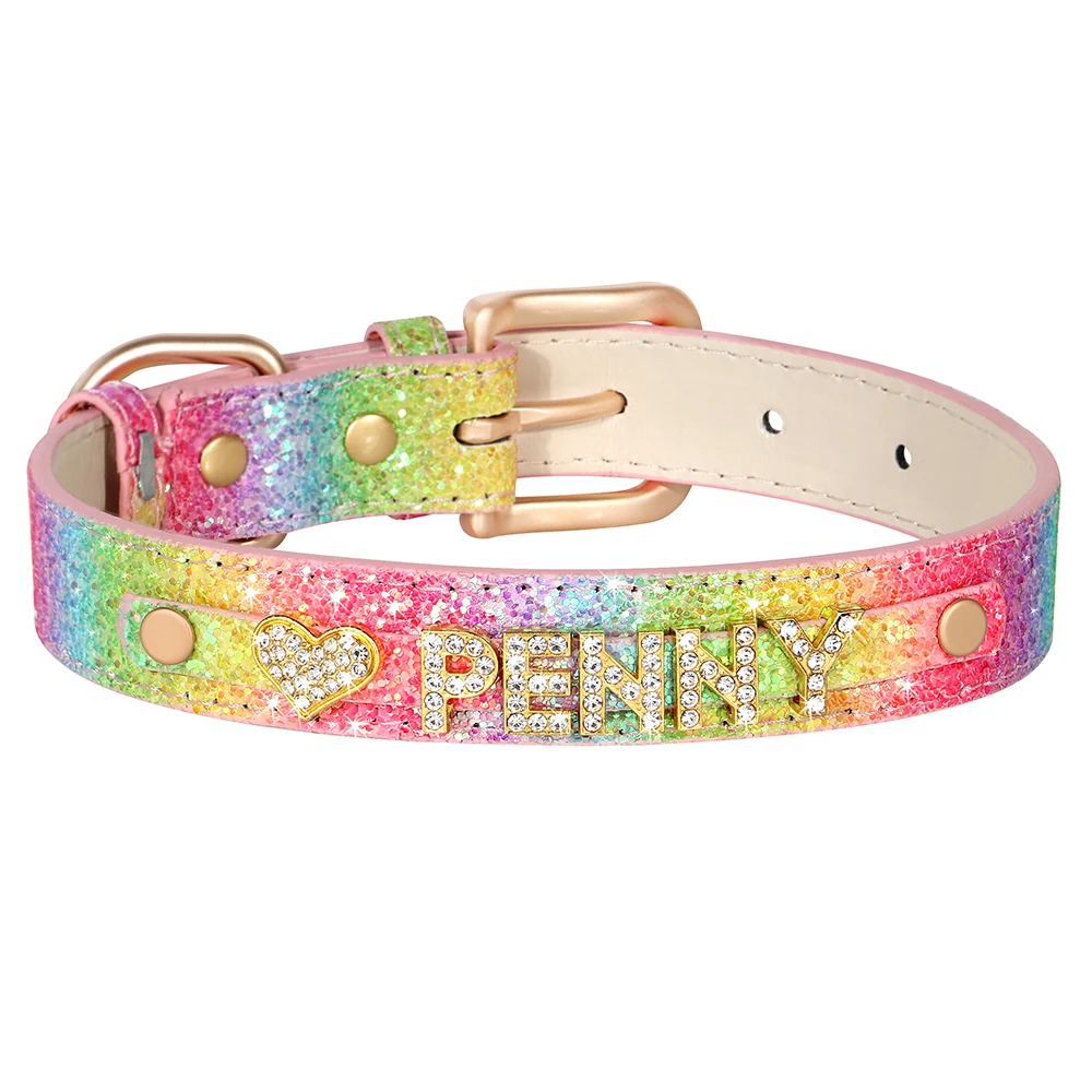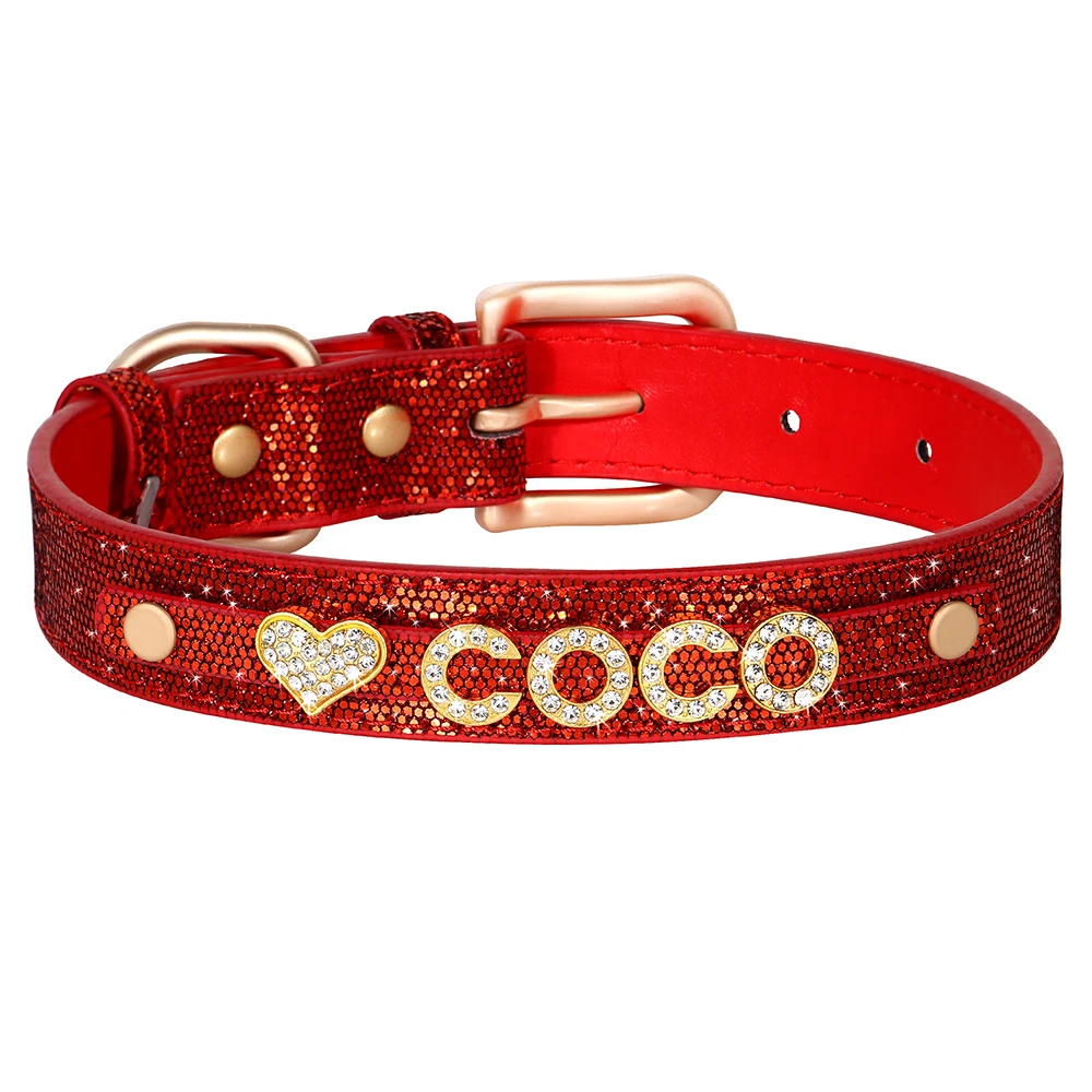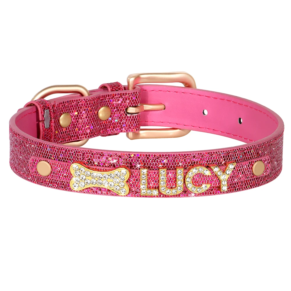 Collar de perro personalizado con diamantes de imitación, Collar de lentejuelas, hebilla de aleación, collares con nombre de gato, grabado gratis para perros pequeños y grandes