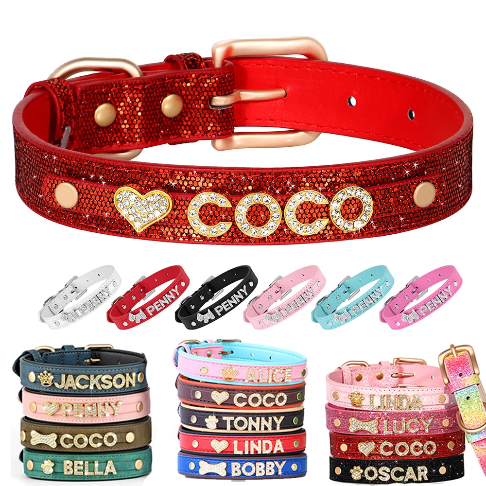 Collar personalizado para perro y cachorro, collares con nombre de perros con diamantes de imitación ostentosos, collares para gato, Collar con nombre y letras, accesorios para mascotas