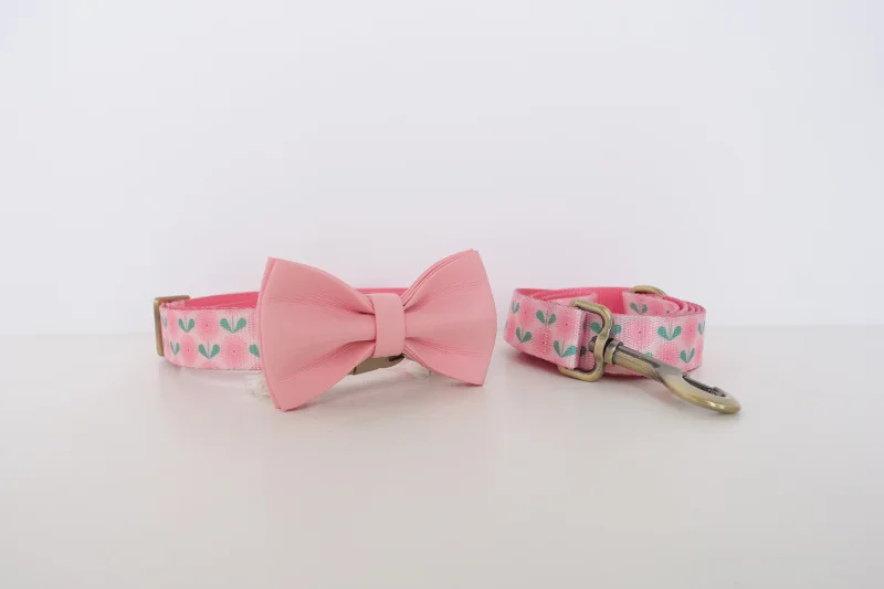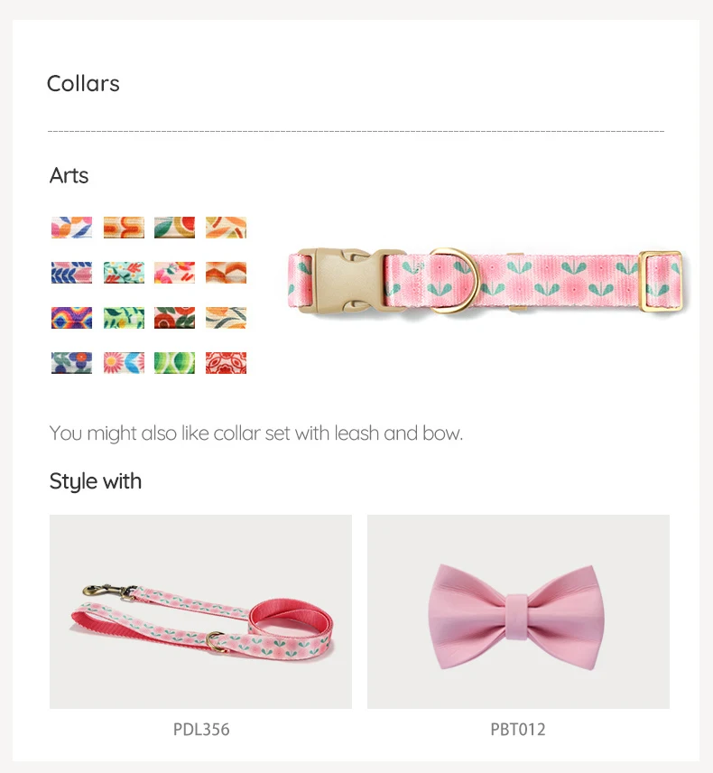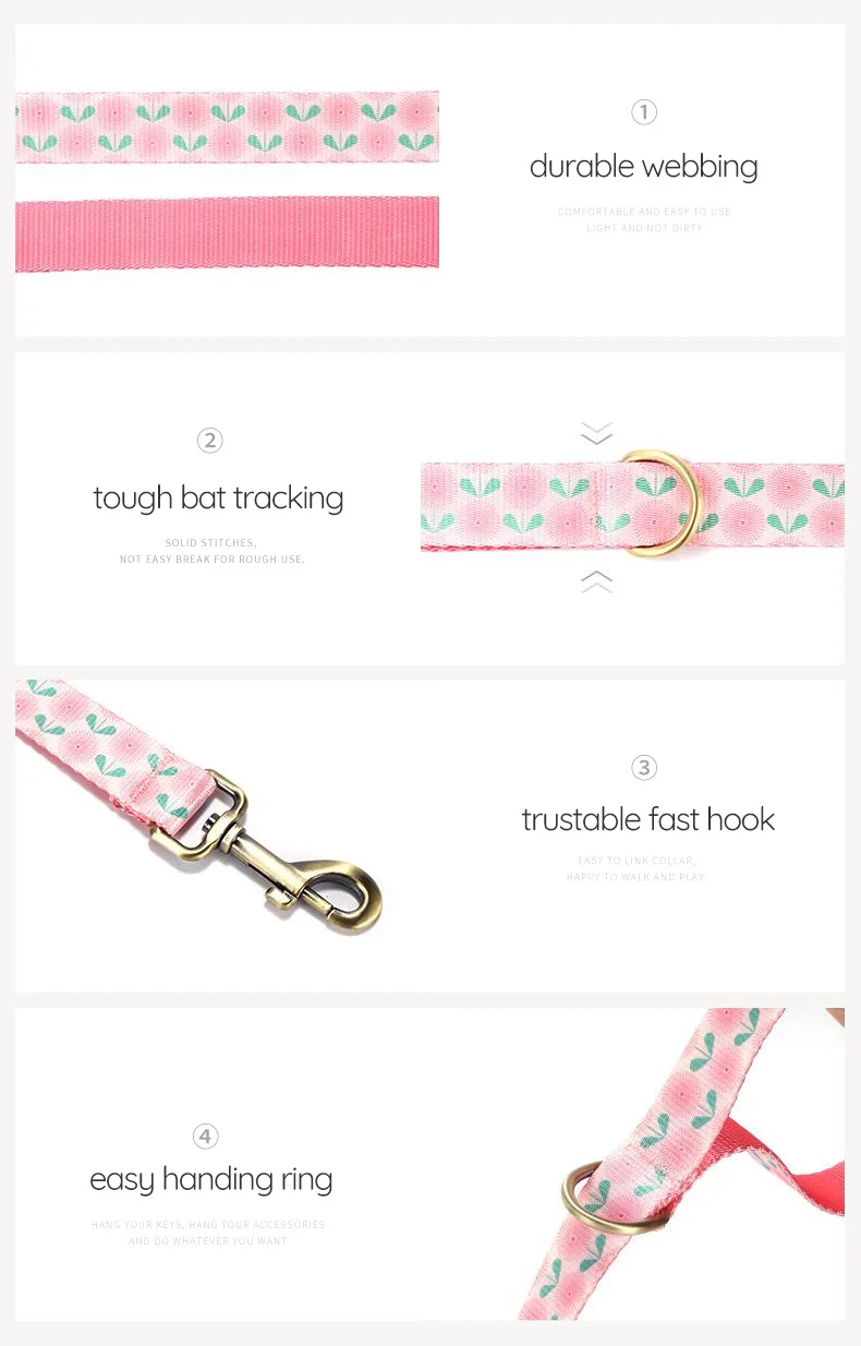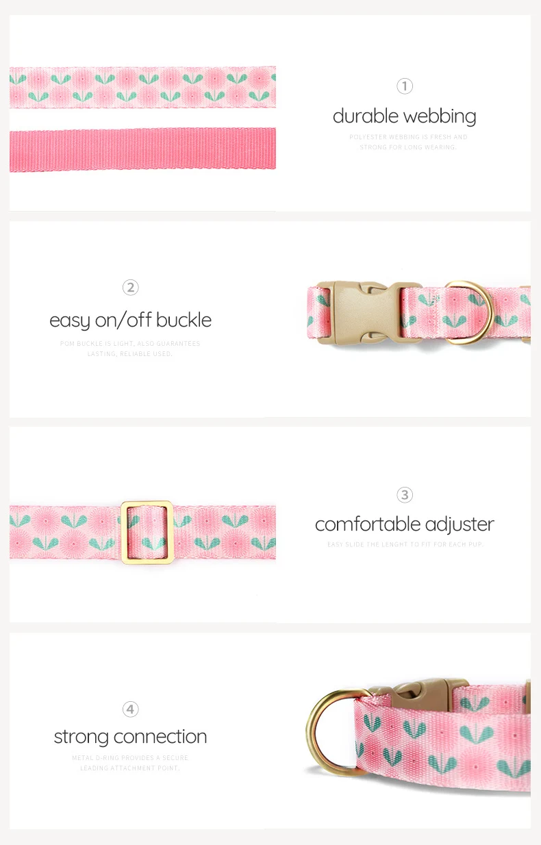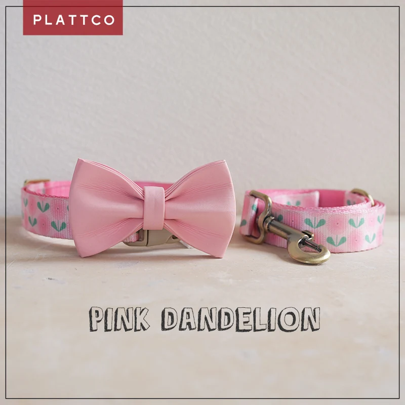 PLATTCO Collar de perro personalizado de diseñador Collar de perro personalizado de nailon de lujo para perros pequeños y grandes collares con nombre de perros pissenlit rosa PDC356