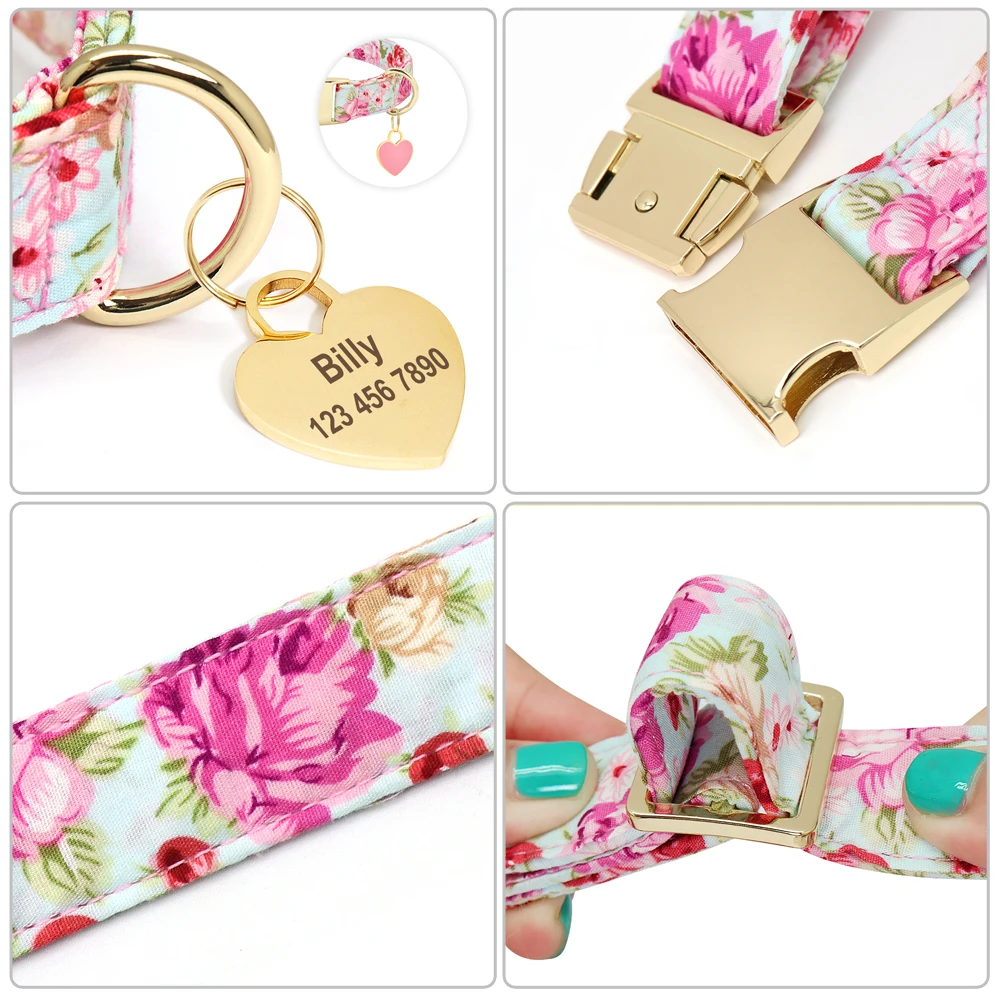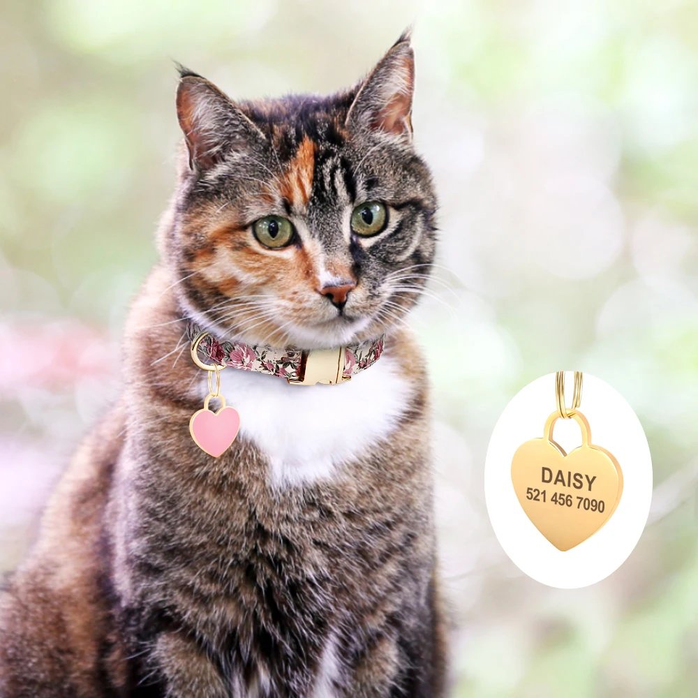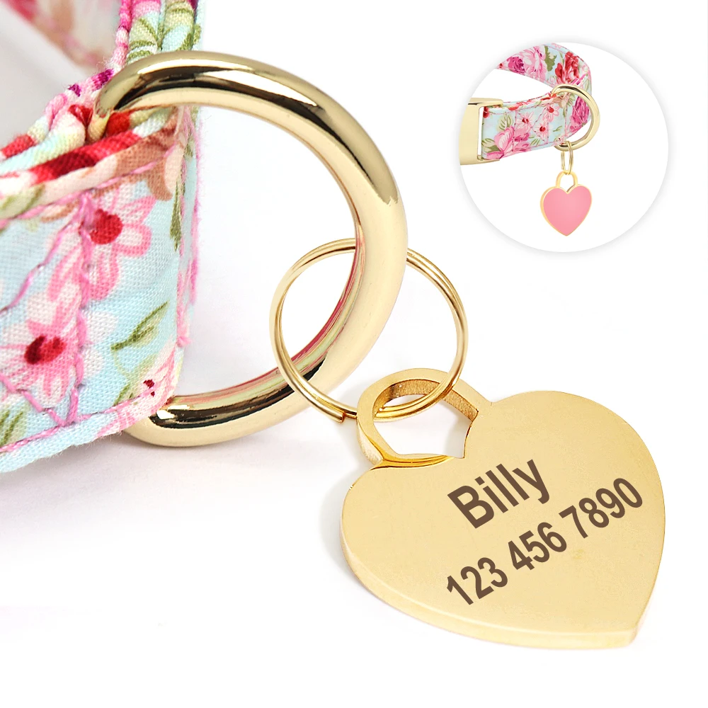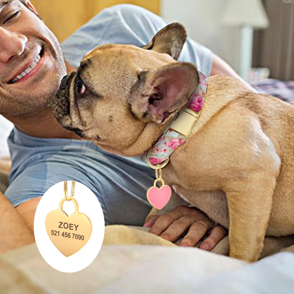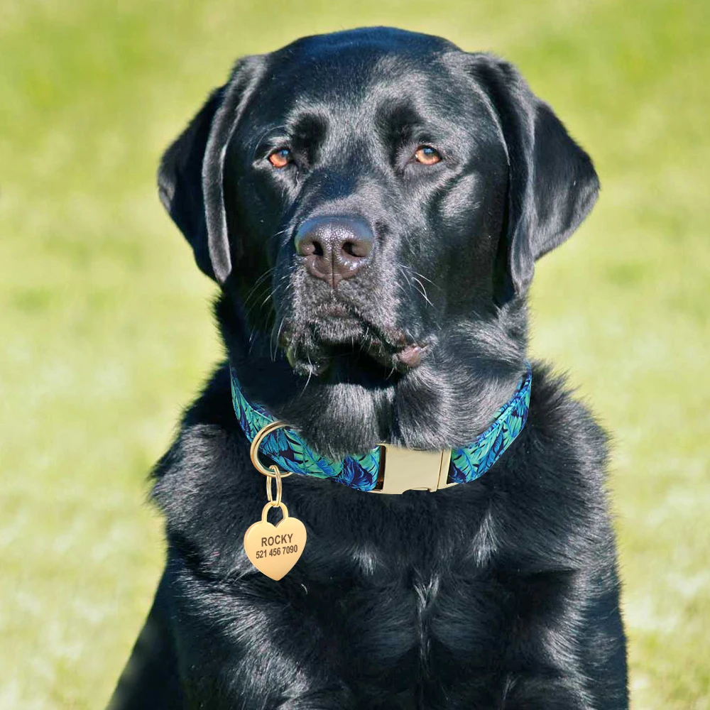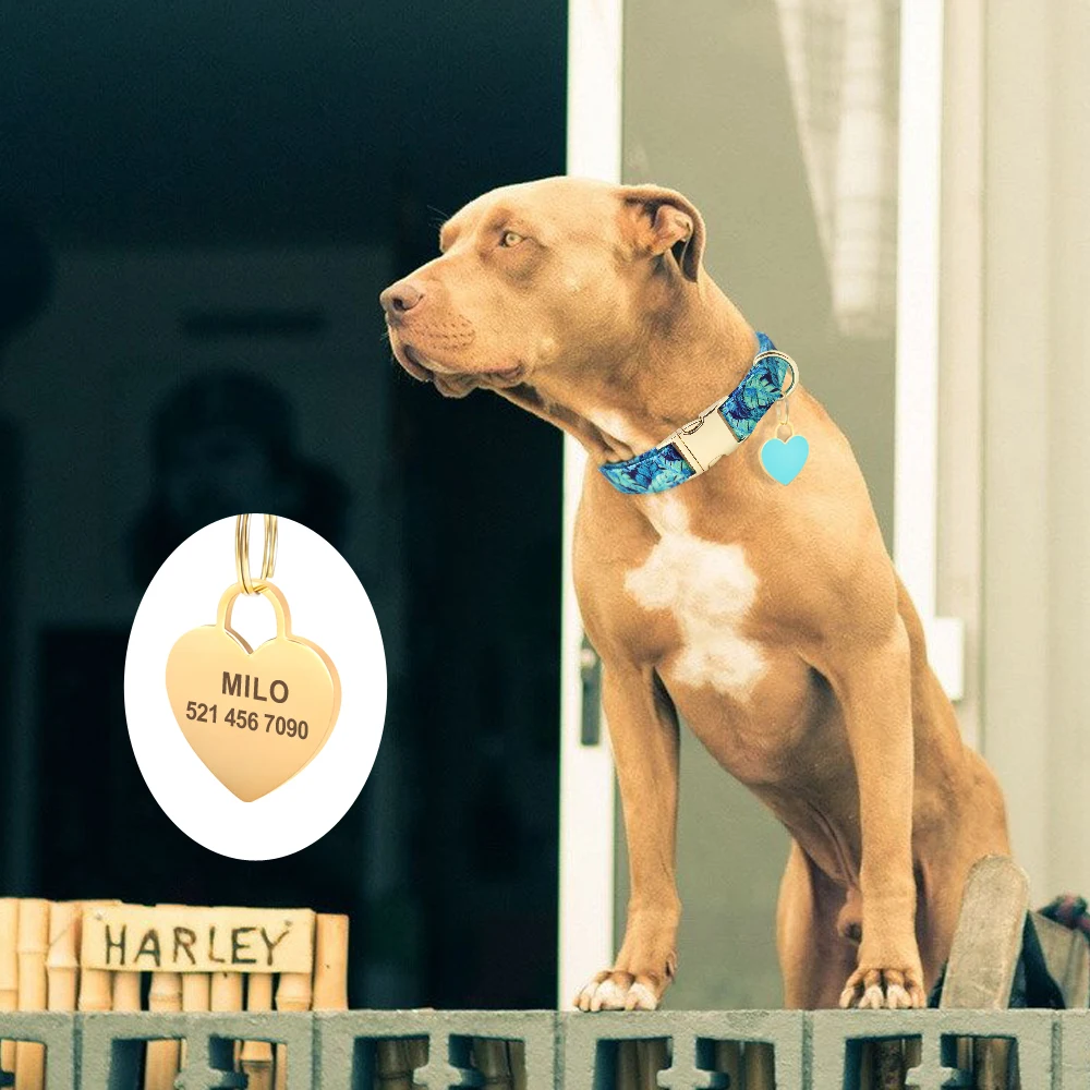 Collar personalizado para perro, collares de identificación para mascotas con estampado de nailon, placa con nombre personalizada con etiqueta de corazón para perro, regalo ajustable para perros pequeños, medianos y grandes