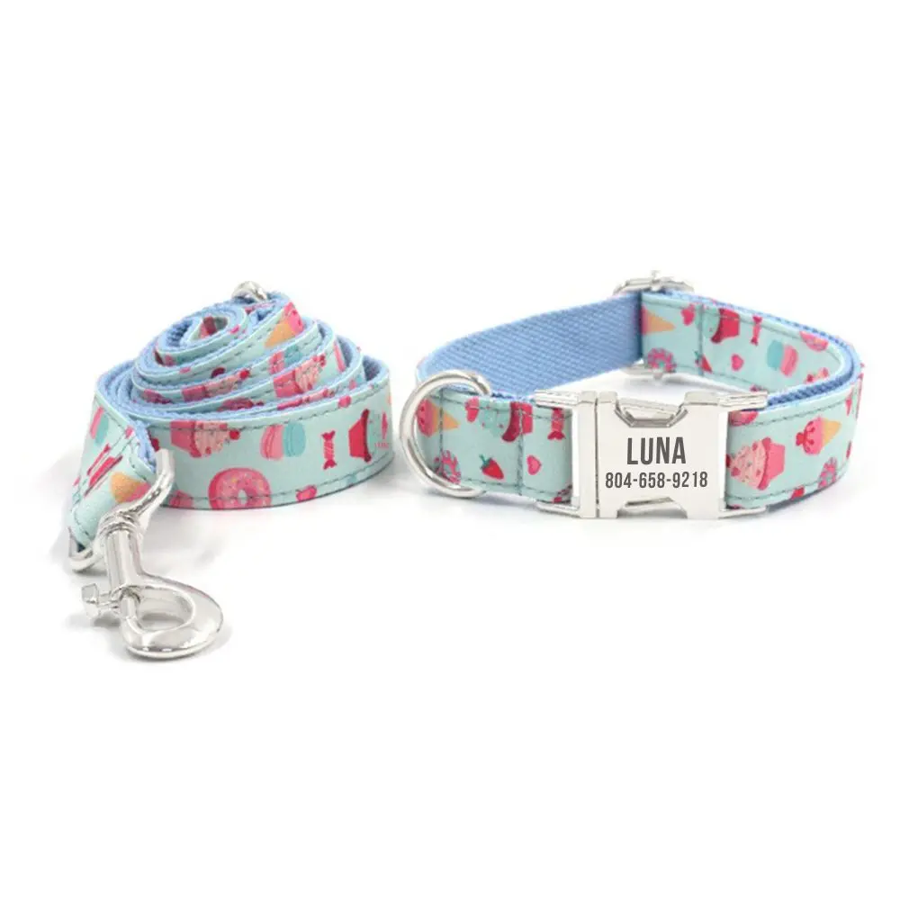 Nombre del producto: Collar para perro personalizado con grabado gratuito, correa para mascotas a juego, hebilla de metal con contactos personalizados, collar para mascota lindo con taza de crema