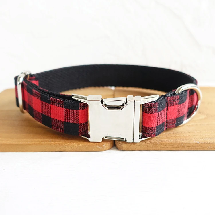 Collar de perro personalizado con grabado gratuito, correa para mascotas a juego, hebilla de Metal de contactos personalizados, collares para mascotas a cuadros de varios colores
