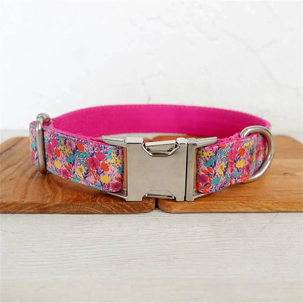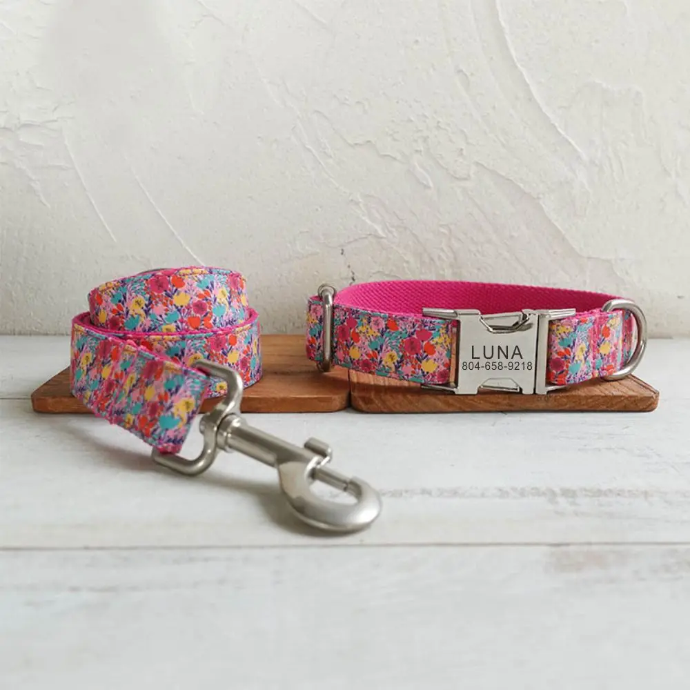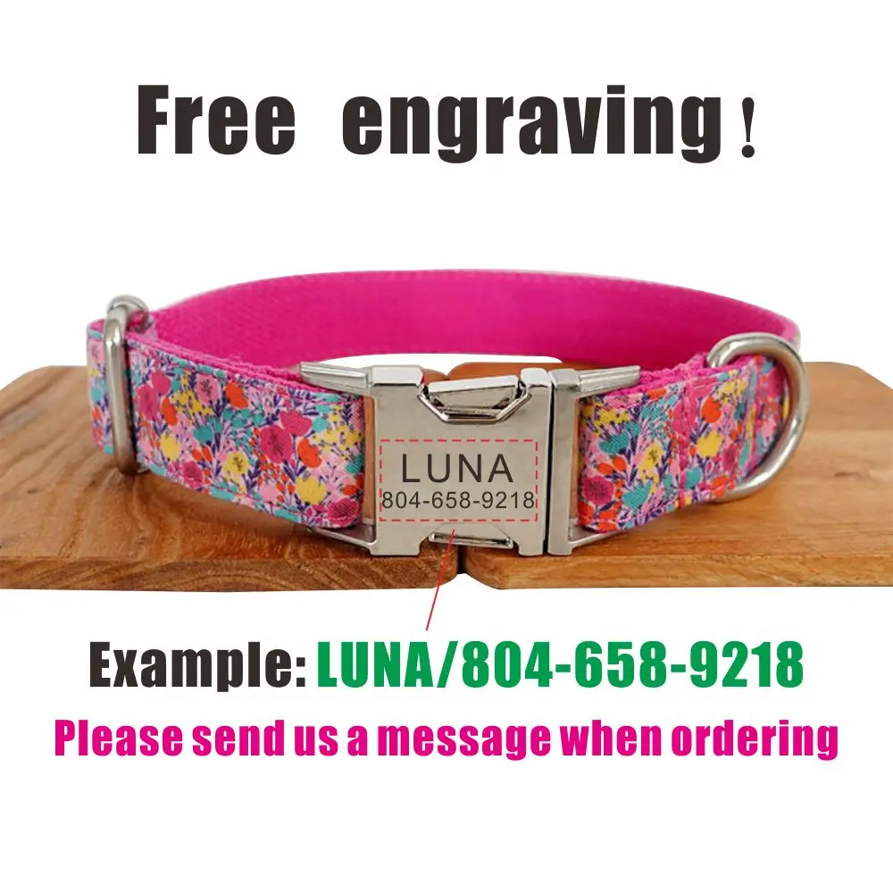 Nombre del producto: Collar personalizado para perros Collar personalizado para mascotas Grabado gratuito Etiqueta de nombre de identificación Accesorio para mascotas Collar de cachorro de flor rosa Juego de correa