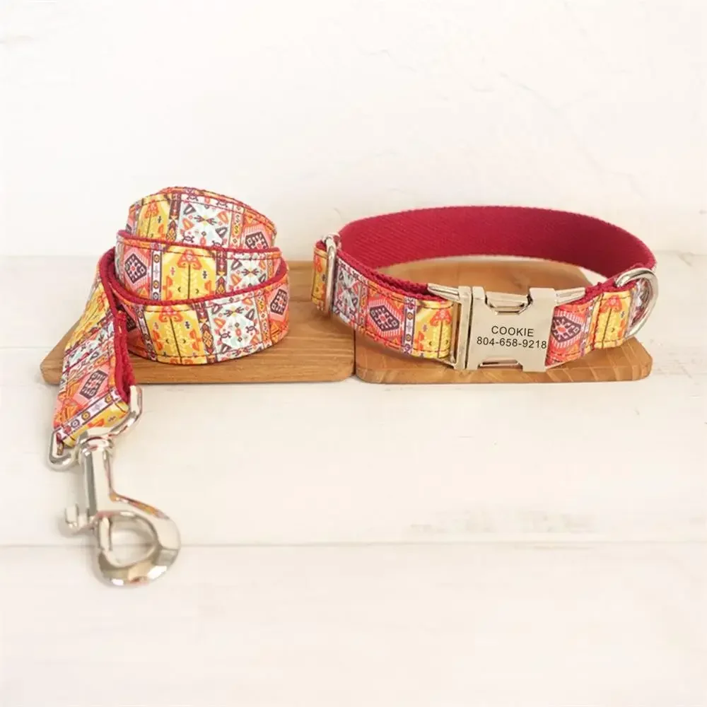 Nombre del producto: Collar para perro personalizado con grabado gratuito, Correa para mascotas a juego, Hebilla de metal con contactos personalizados, Collar rojo para mascotas