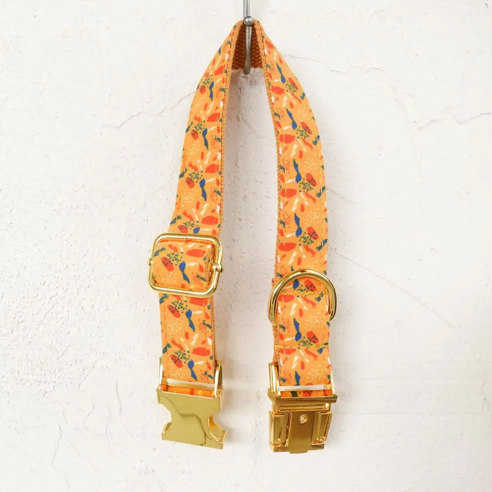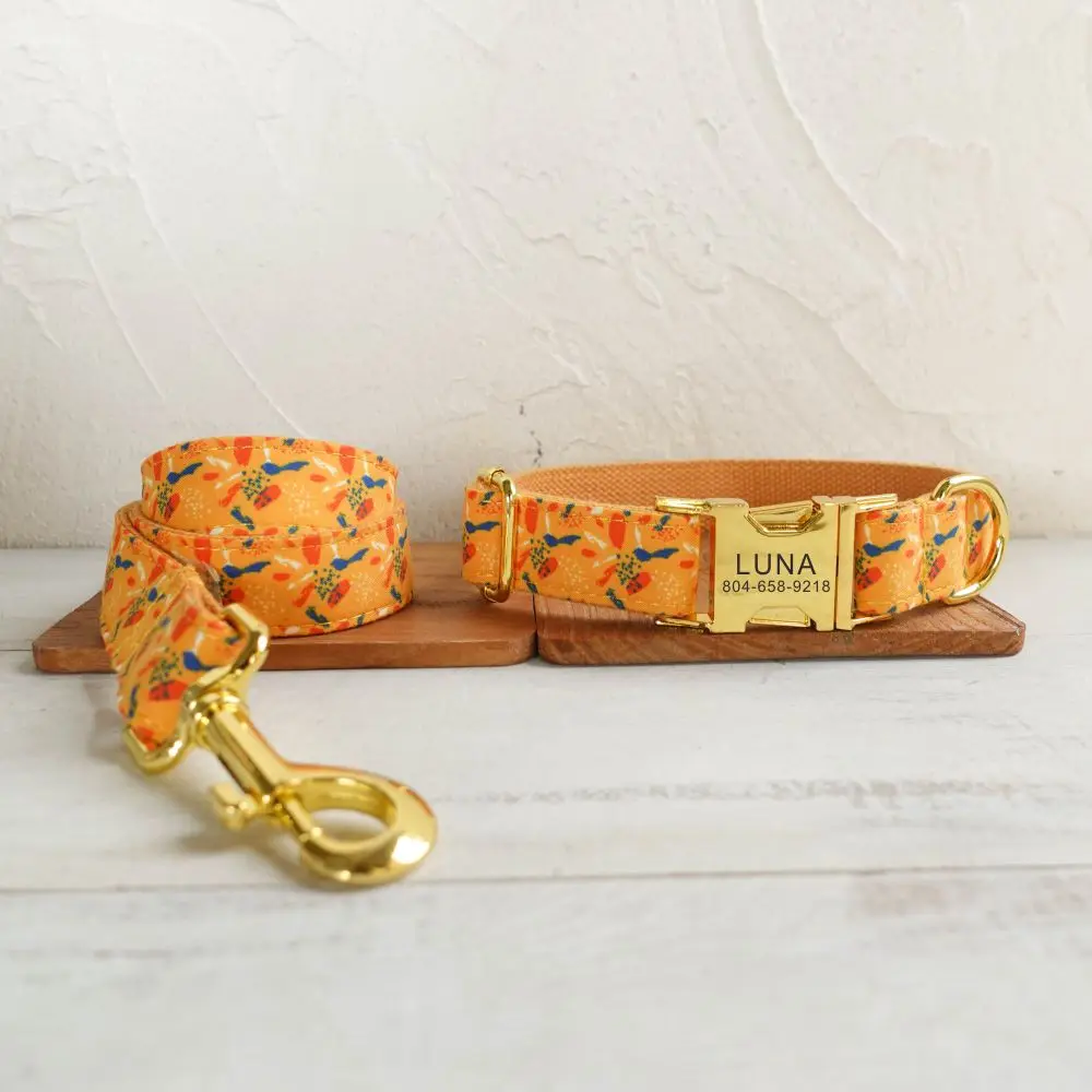 Nombre del producto: Collar personalizado para perros Collar personalizado para mascotas Grabado gratuito Etiqueta de nombre de identificación Accesorio para mascotas Juego de correa de collar de cachorro de fibra de pez dorado amarillo