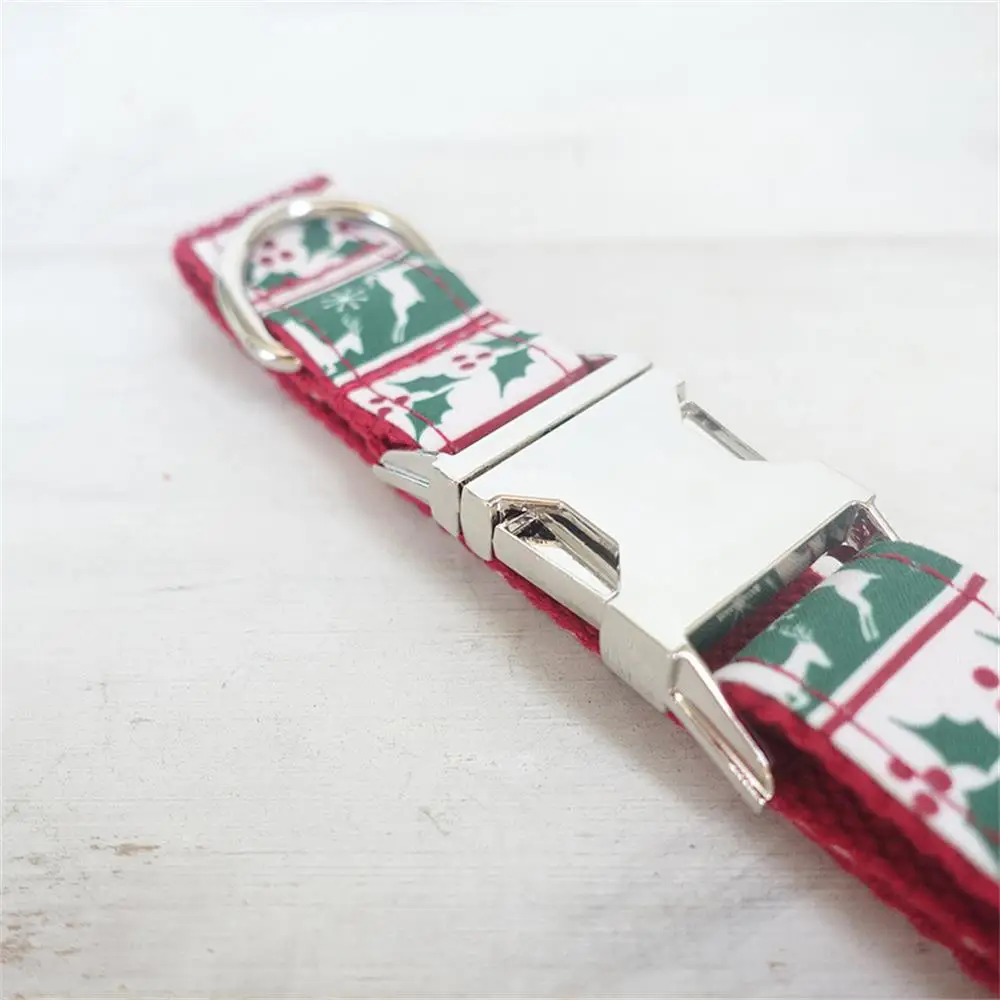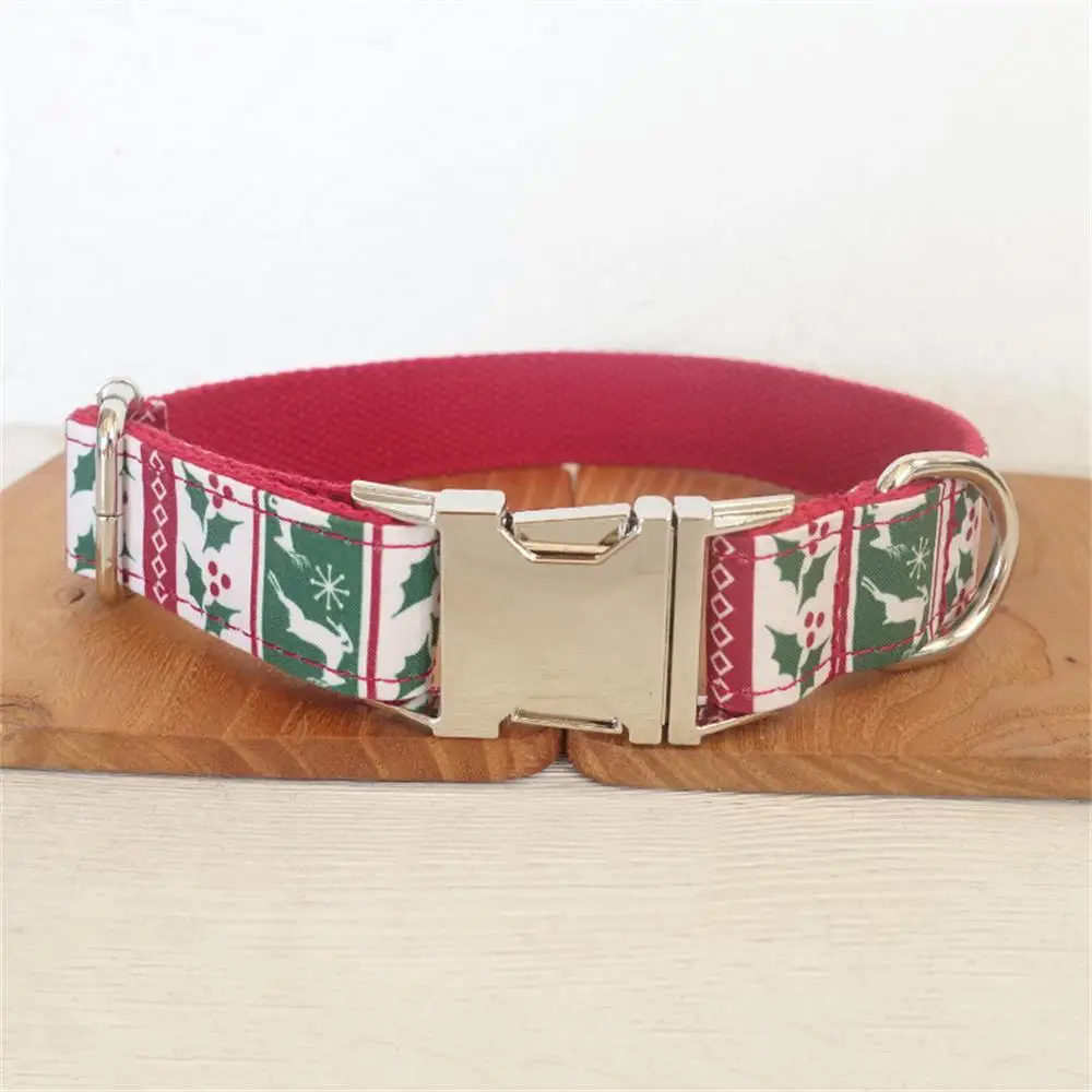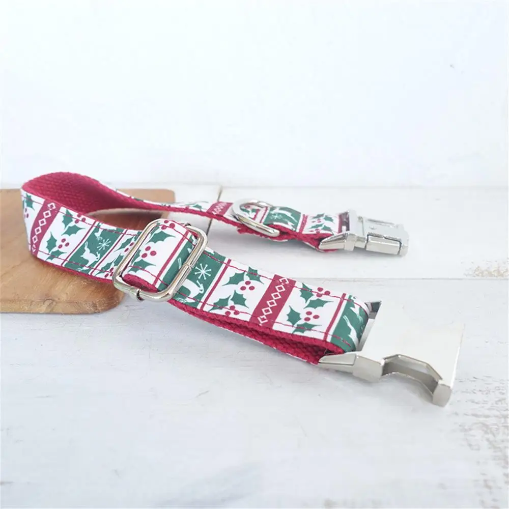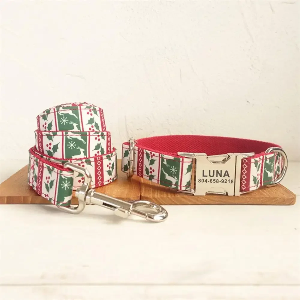 Nombre del producto: Collar personalizado para mascota Mistletoe, placa con nombre personalizada para cachorro, etiqueta de identificación, hebilla ajustable, collares básicos de ciervo navideño, juego de correa de plomo