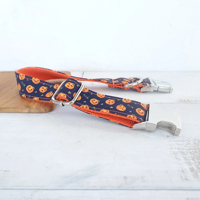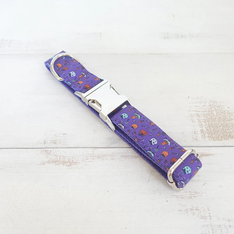 Collar de perro personalizado con grabado gratuito, correa para mascotas a juego, hebilla de contactos personalizados, Collar para mascotas de calabazas moradas y naranjas