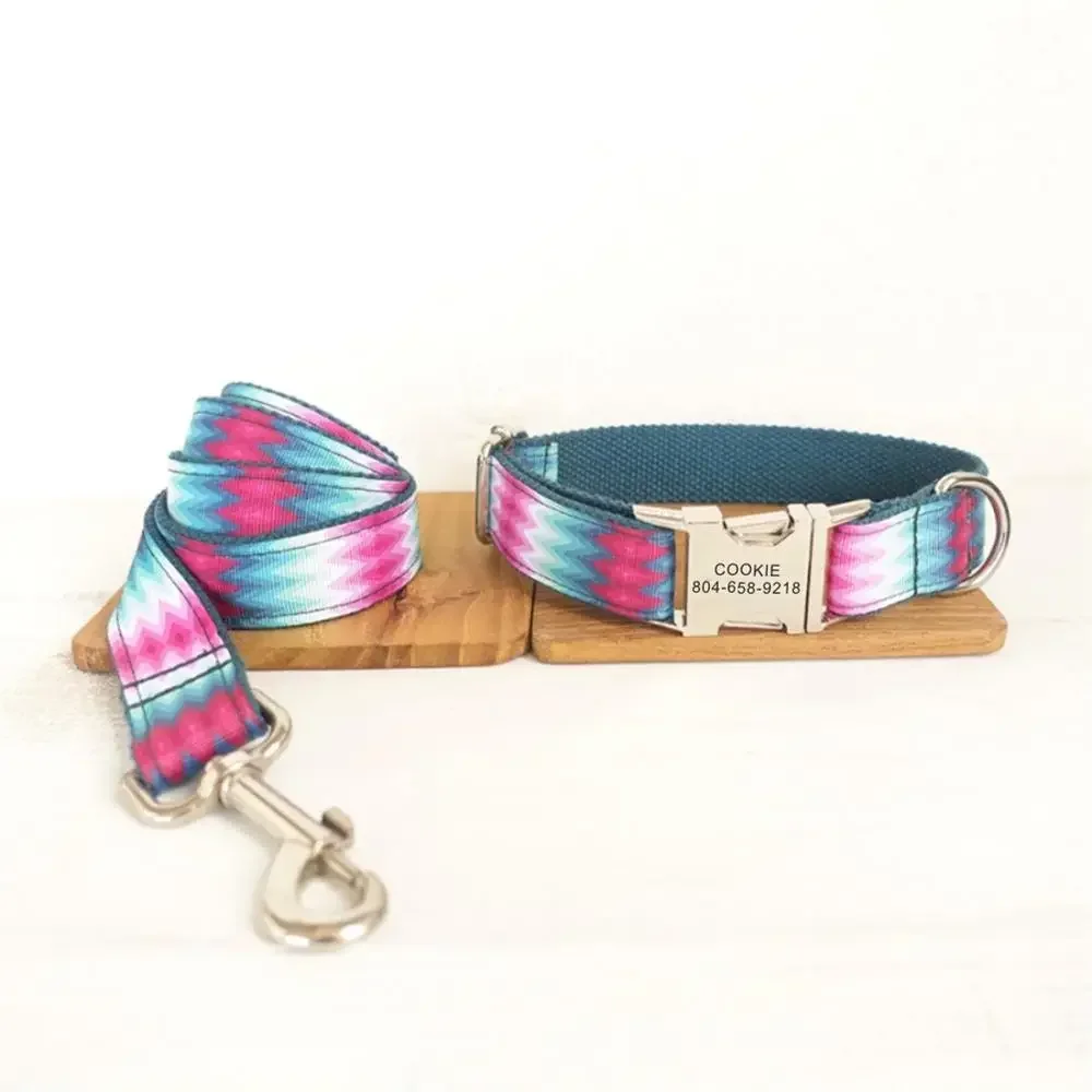 Nombre del producto: Collar para perro personalizado con grabado gratuito, Correa para mascotas a juego, Hebilla de contacto personalizada, Collar para mascotas con plumas de pavo real verdes
