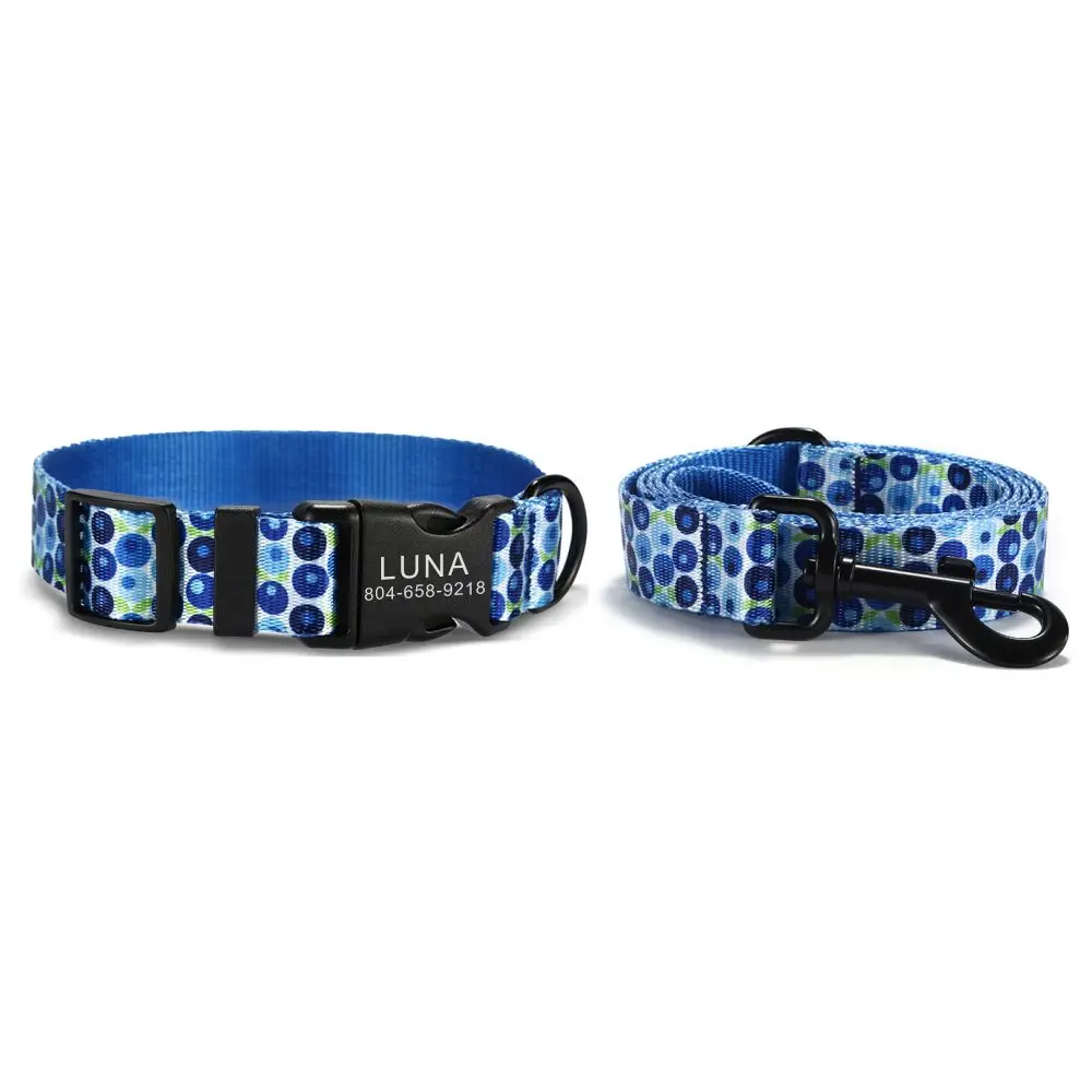 Nombre del producto: Collar personalizado para perros con grabado gratuito, correa para mascotas a juego, hebilla de contacto personalizada, Collar para mascotas con arándanos