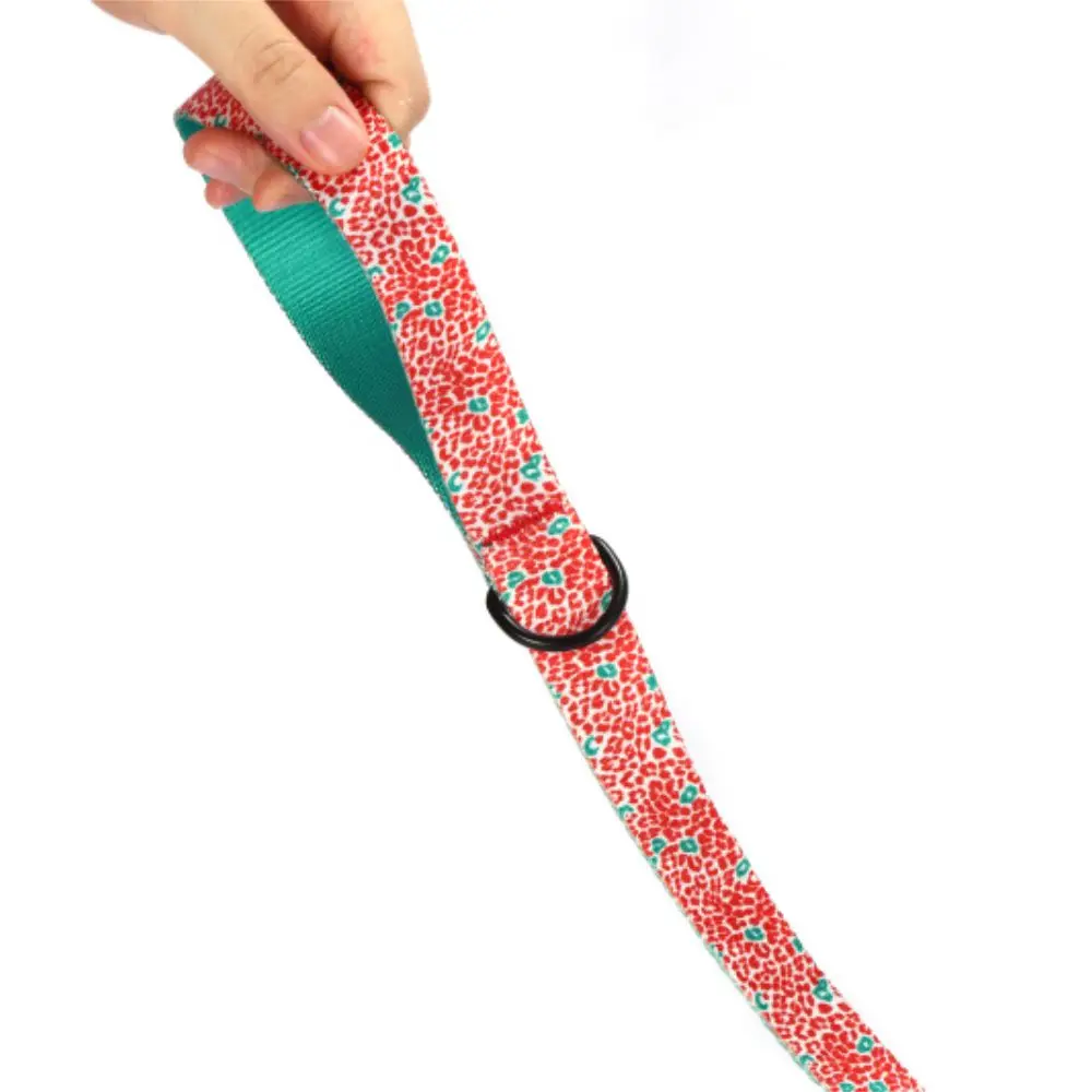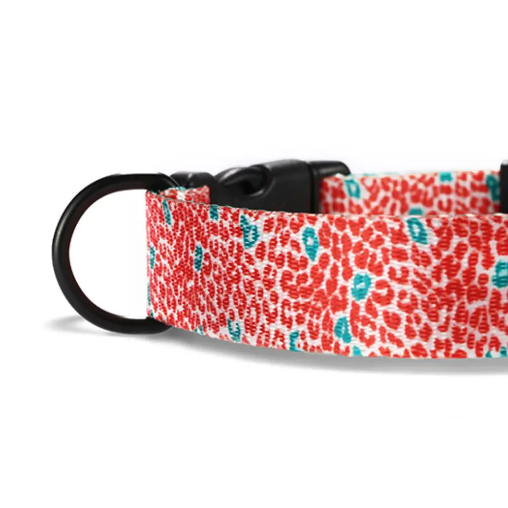 Nombre del producto: Collar personalizado para perros con grabado gratuito, correa para mascotas a juego, hebilla de contacto personalizada, Collar para mascotas con diseño de leopardo rojo