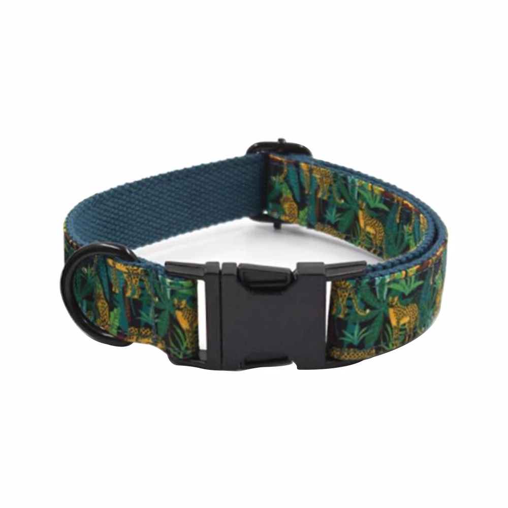 Nombre del producto: Collar personalizado para perros Collares personalizados para mascotas Etiqueta de identificación de grabado Accesorio para mascotas Juego de correa para collar de cachorro de leopardo de la jungla