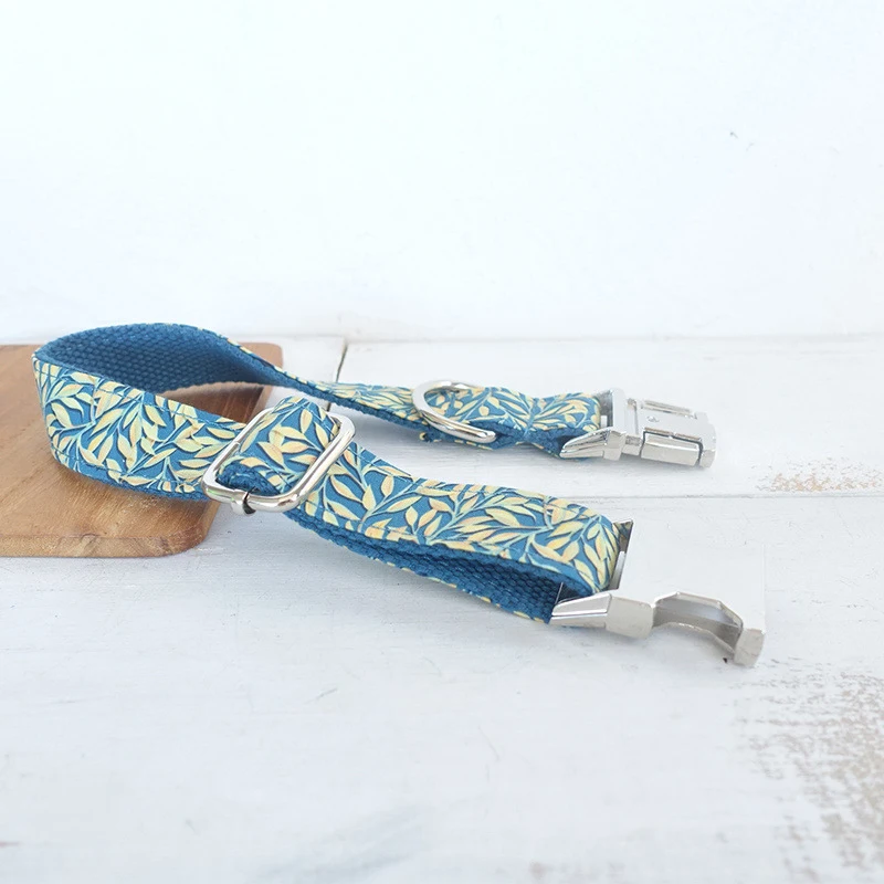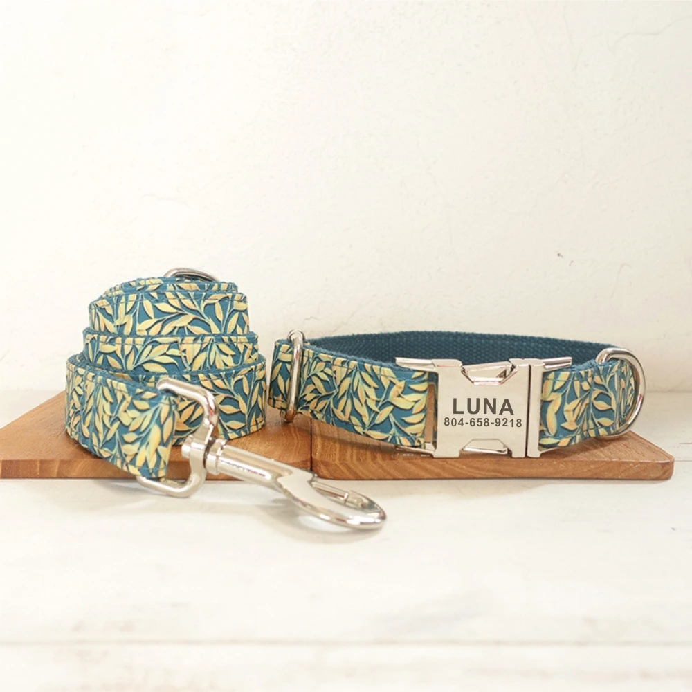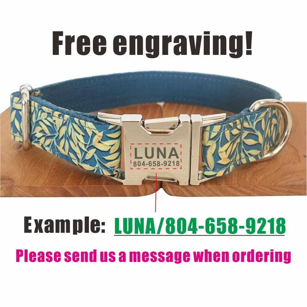 Collar de perro personalizado con grabado gratuito, correa para mascotas a juego, hebilla de Metal de contactos personalizados, Collar para mascotas de hoja dorada