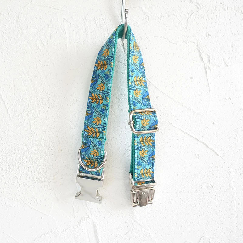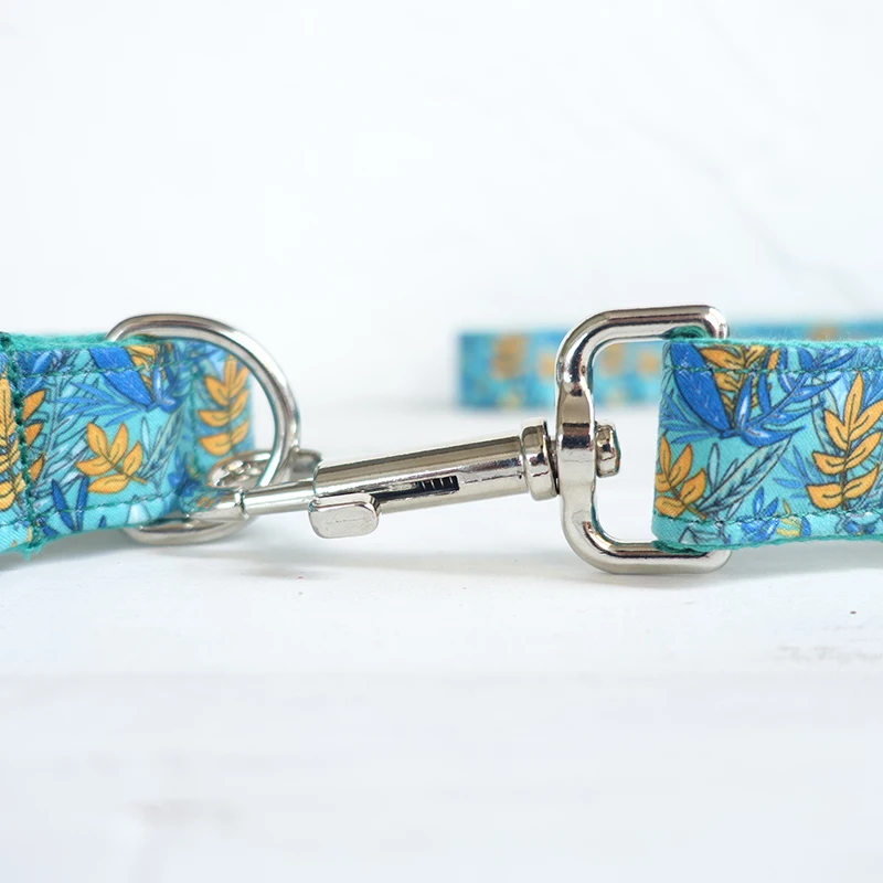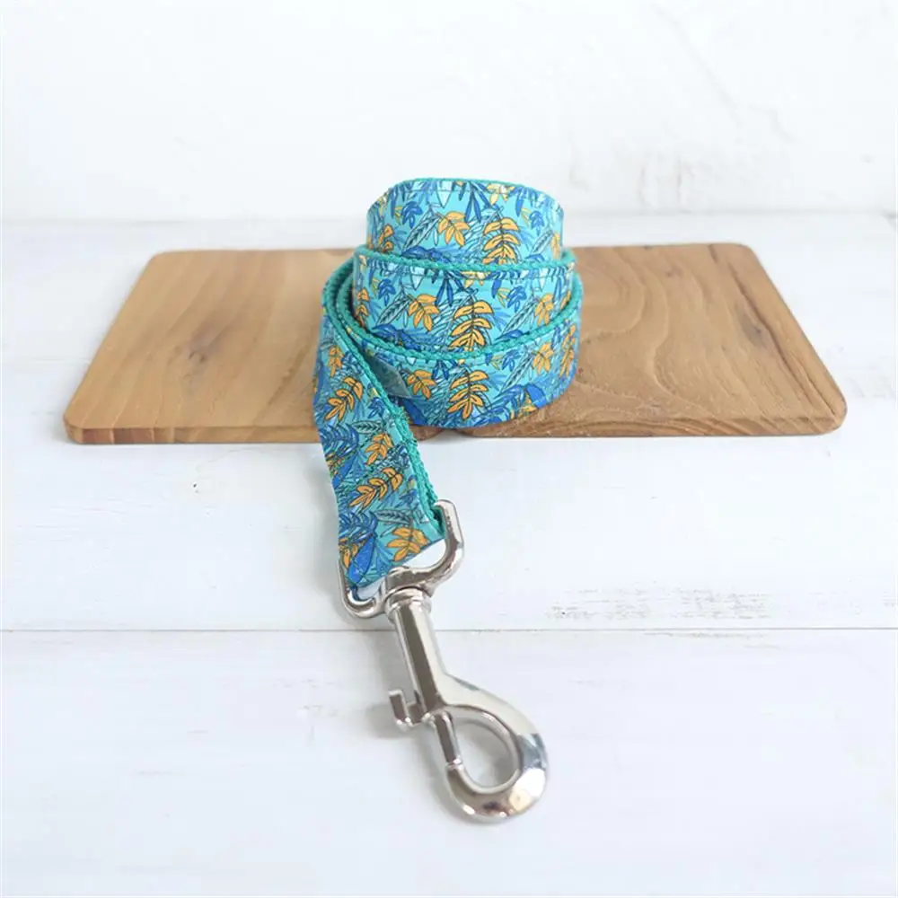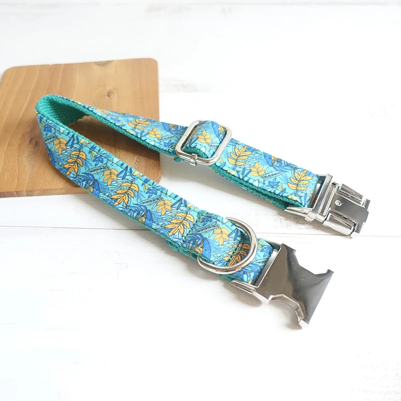 Nombre del producto: Collar personalizado para mascotas, placa con identificación personalizada, etiqueta de identificación, flores verdes ajustables, collares para perros y gatos, juego de correa de plomo