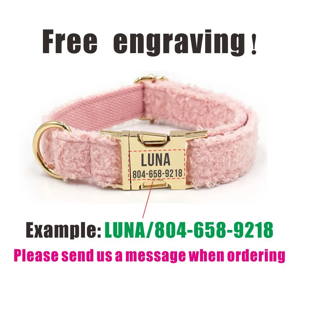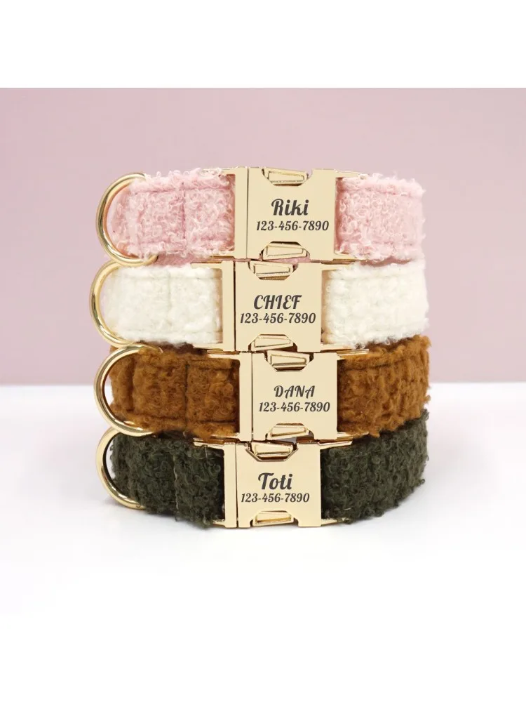 Collar de perro personalizado con grabado gratuito, correa para mascotas a juego, hebilla de Metal de contactos personalizados, Collar de invierno para mascotas de lana de felpa