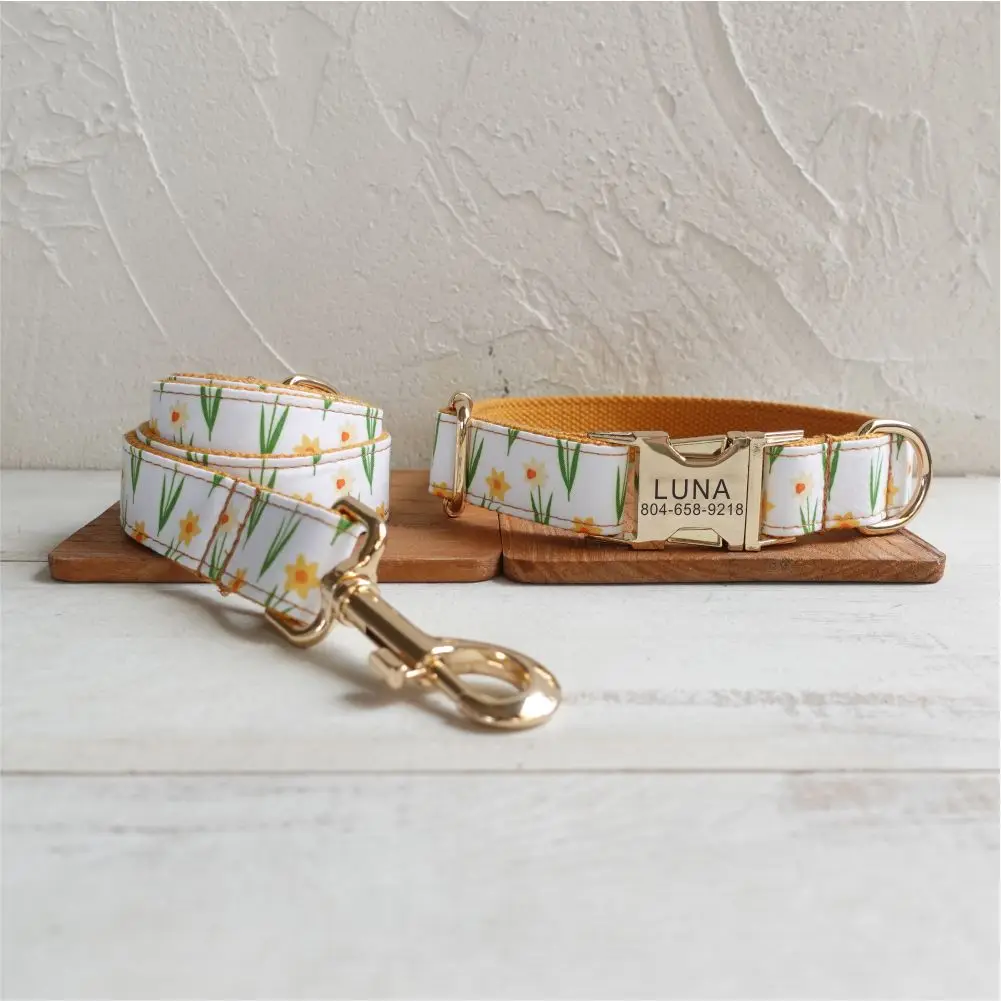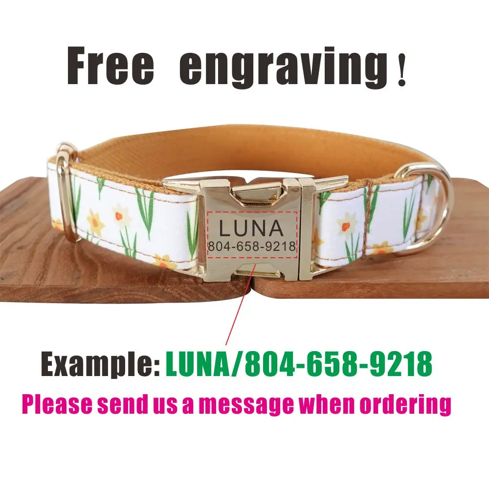 Collar de perro personalizado con grabado gratuito, correa para mascotas a juego, hebilla de Metal de contactos personalizados, Collar de cachorro de verano