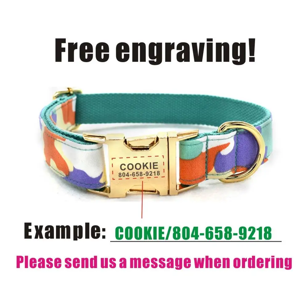 Collar de perro personalizado con grabado gratuito, correa para mascotas a juego, hebilla de Metal de contactos personalizados, Collar de camuflaje para cachorros