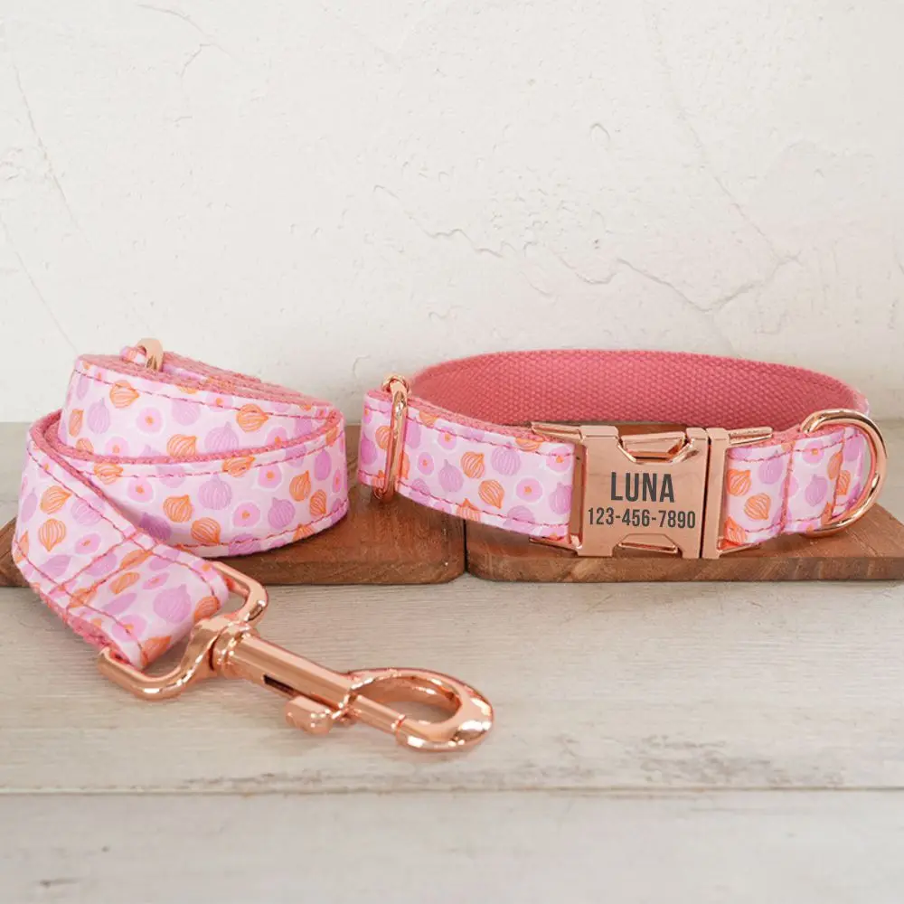 Collar de perro personalizado con grabado gratuito, correa para mascotas a juego, hebilla de Metal de contactos personalizados, lindo Collar para mascotas de cebolla rosa