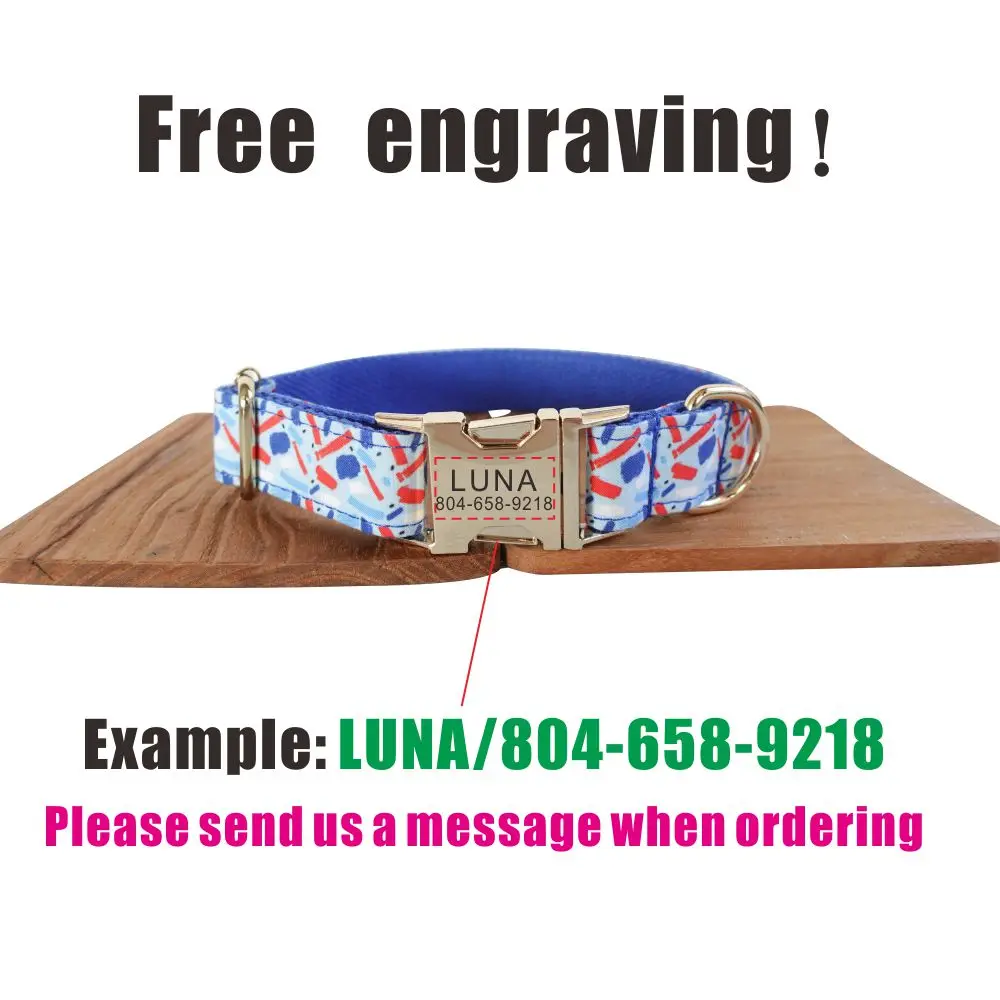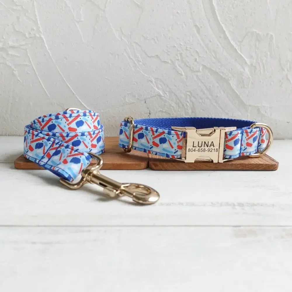 Collar de perro personalizado con grabado gratuito, correa para mascotas a juego, hebilla de Metal de contactos personalizados, Collar para mascotas azul caramelo