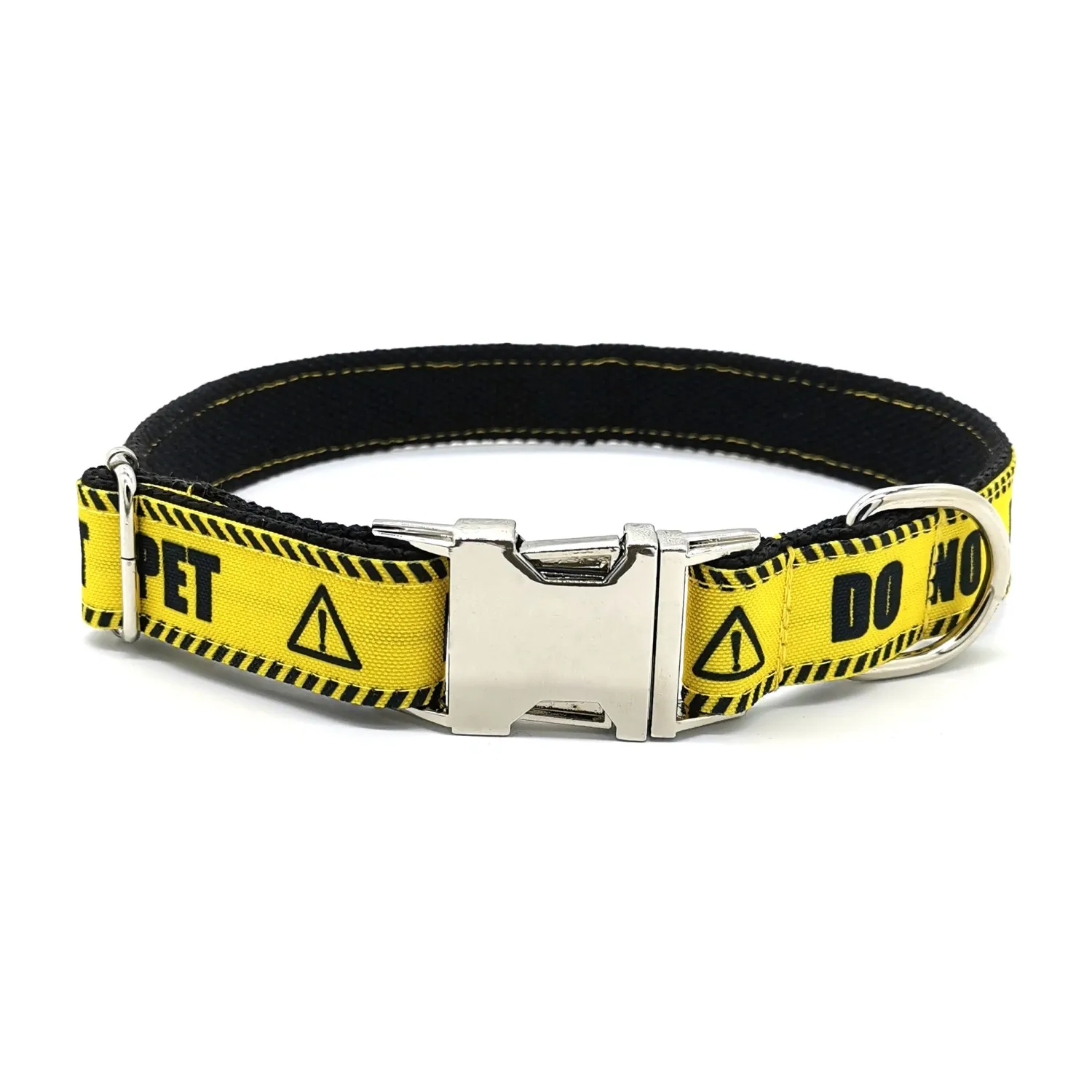 Nombre del producto: Collar personalizado para mascotas, señal de advertencia, etiqueta de identificación para cachorros y gatos, nombre personalizado ajustable, rojo, amarillo, no para mascotas, collares básicos para perros