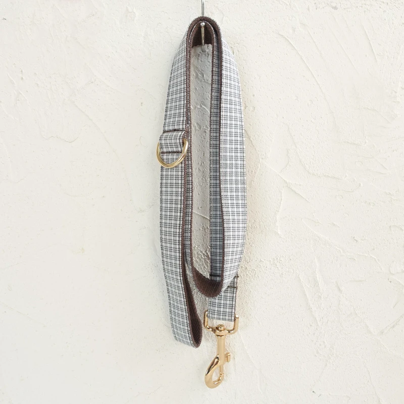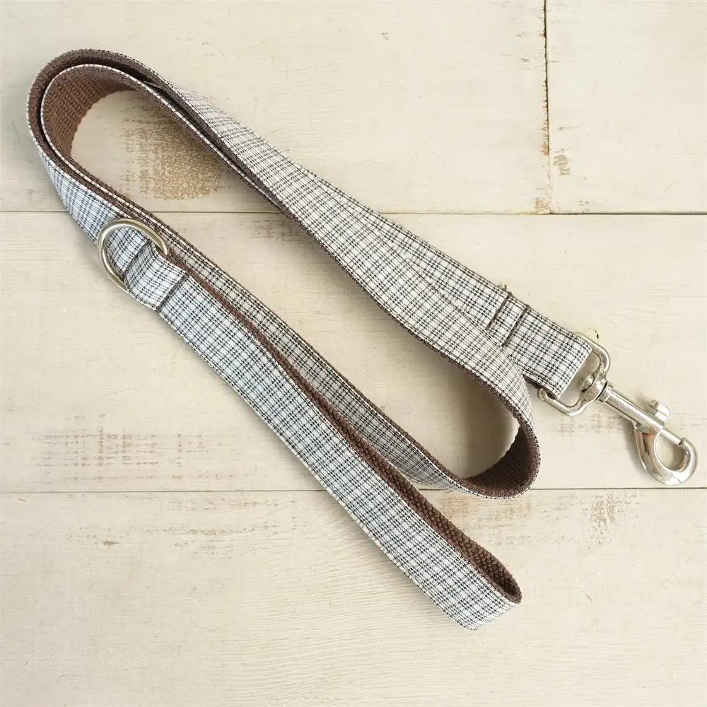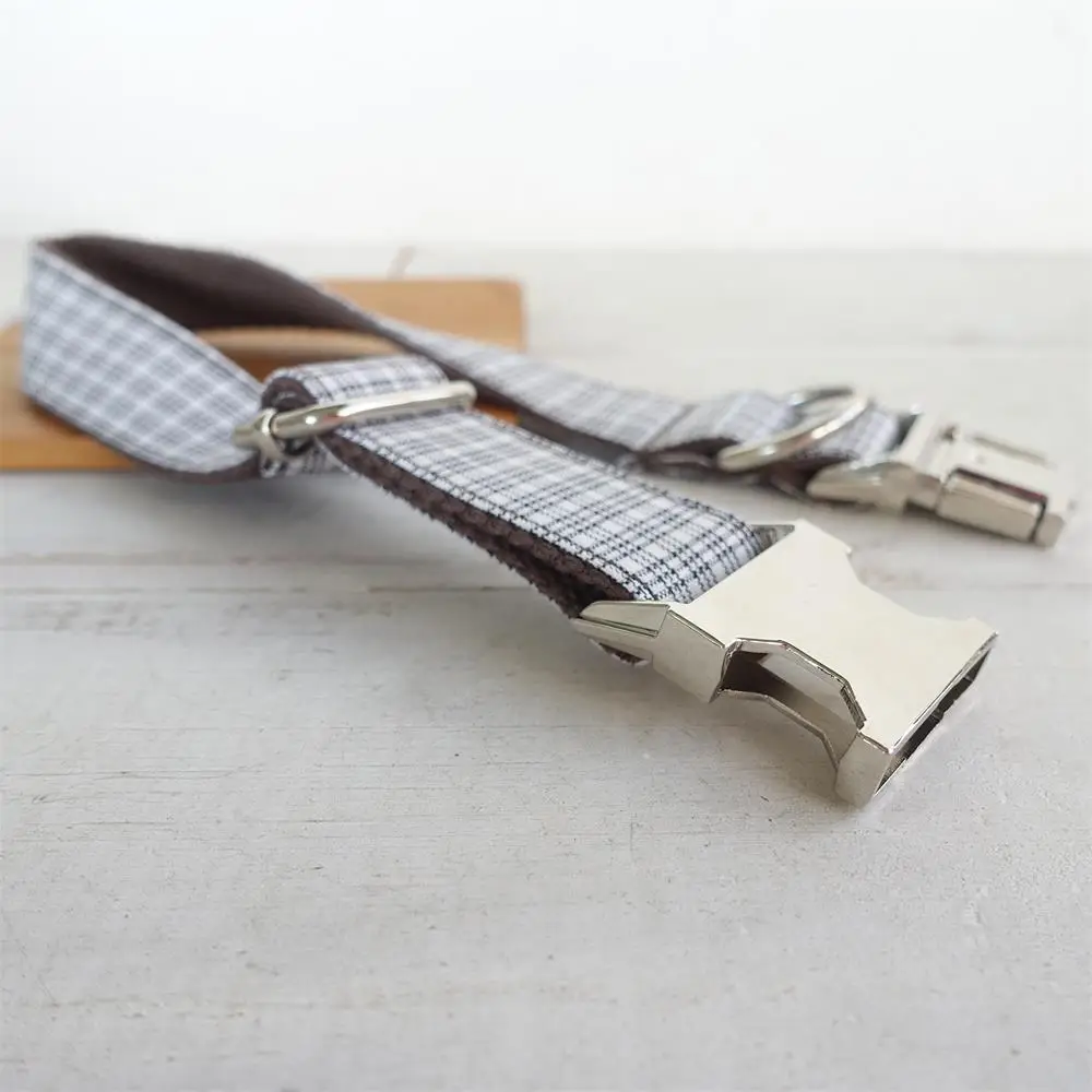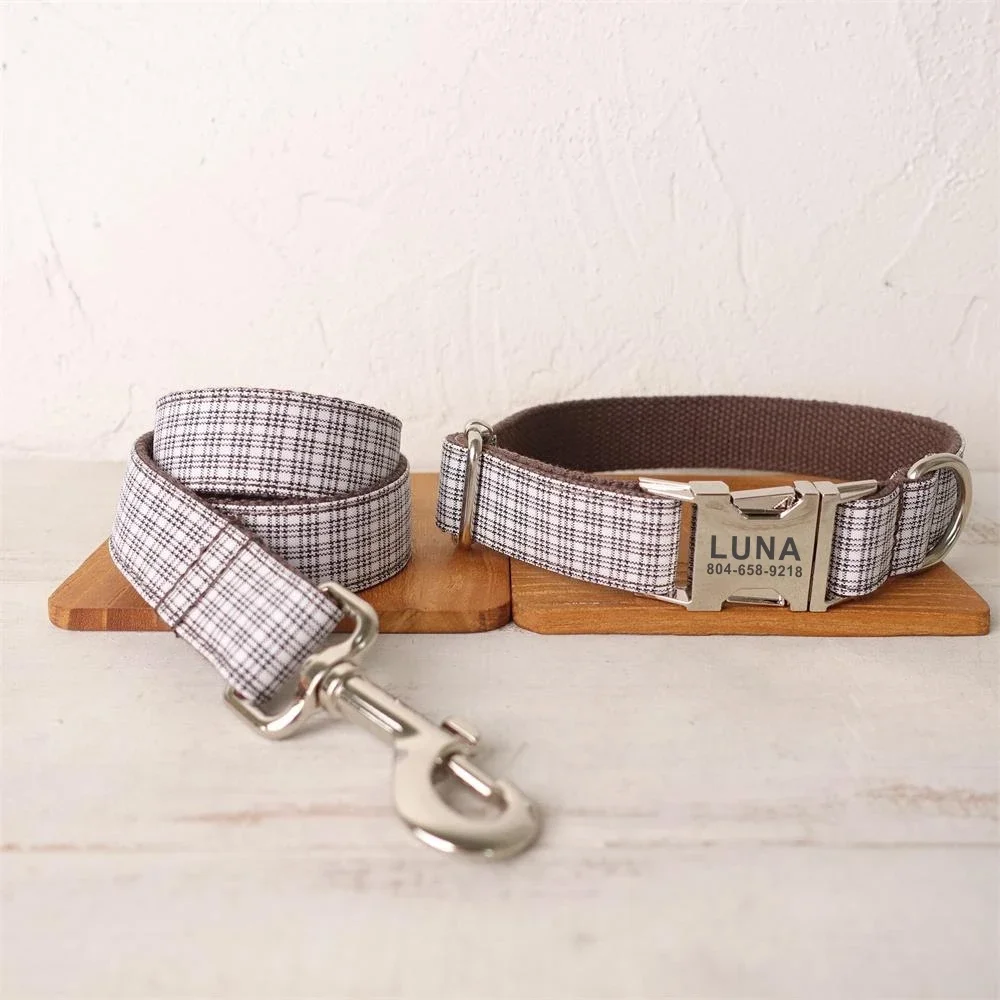 Collar de perro personalizado con grabado gratuito, correa para mascotas a juego, hebilla de Metal de contactos personalizados, Collar para mascotas a cuadros blanco marrón