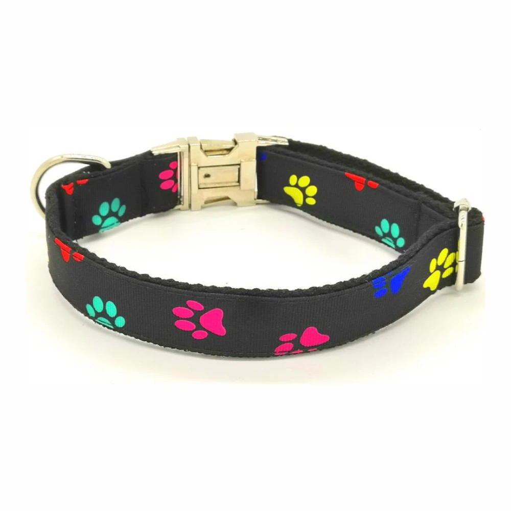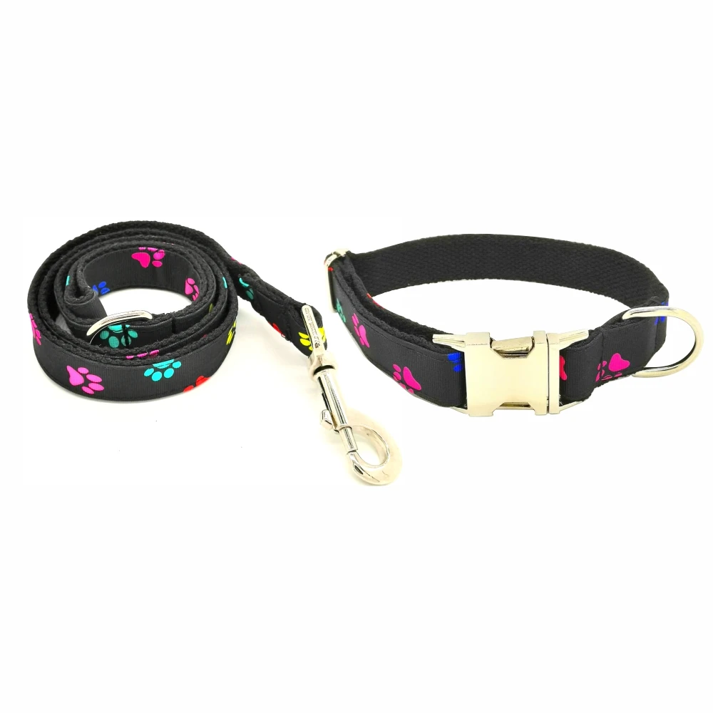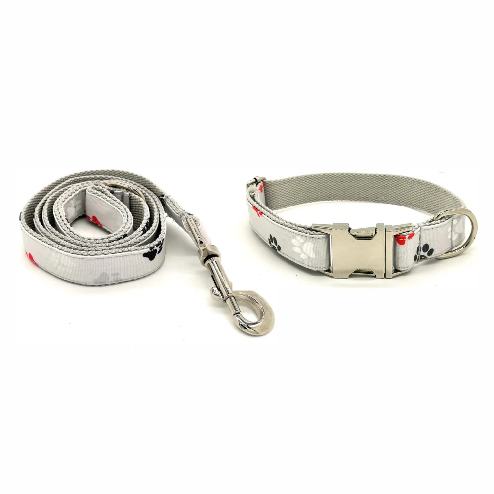 Collar de perro personalizado con grabado gratuito, correa para mascotas a juego, hebilla de Metal de contactos personalizados, Collar de patas grises arcoíris