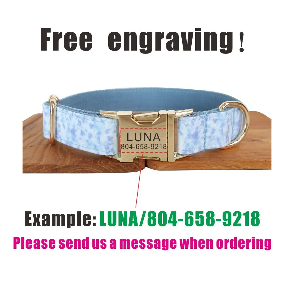 Nombre del producto: Collar personalizado para perros Collar personalizado para mascotas Grabado gratuito Etiqueta de nombre de identificación Accesorio para mascotas Correa para collar mágico azul para cachorros