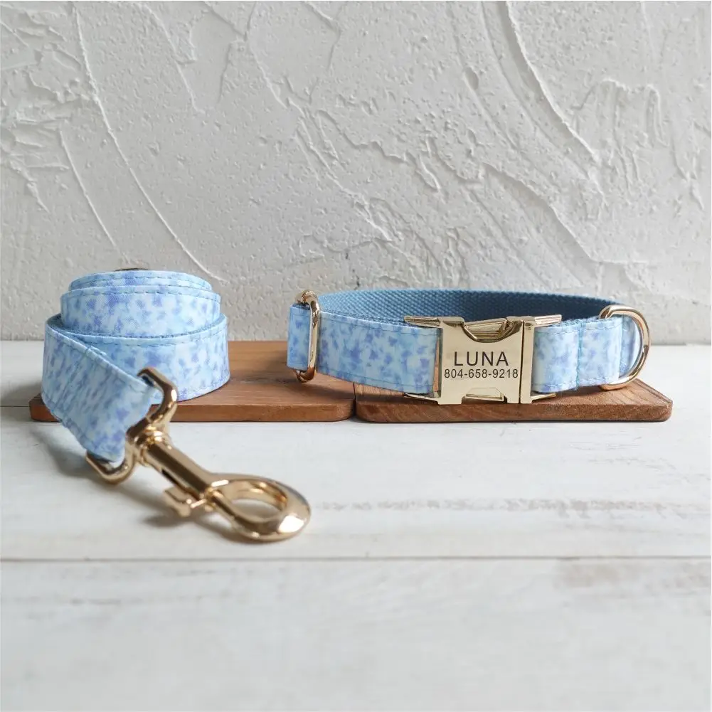 Collar de perro personalizado con grabado gratuito, correa para mascotas a juego, hebilla de Metal de contactos personalizados, Collar para mascotas de fuego azul