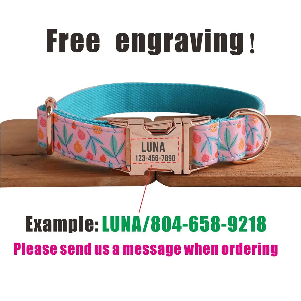 Nombre del producto: Collar para perro personalizado con grabado gratuito, Correa para mascotas a juego, Hebilla de metal con contactos personalizados, Collar para huerto de granada