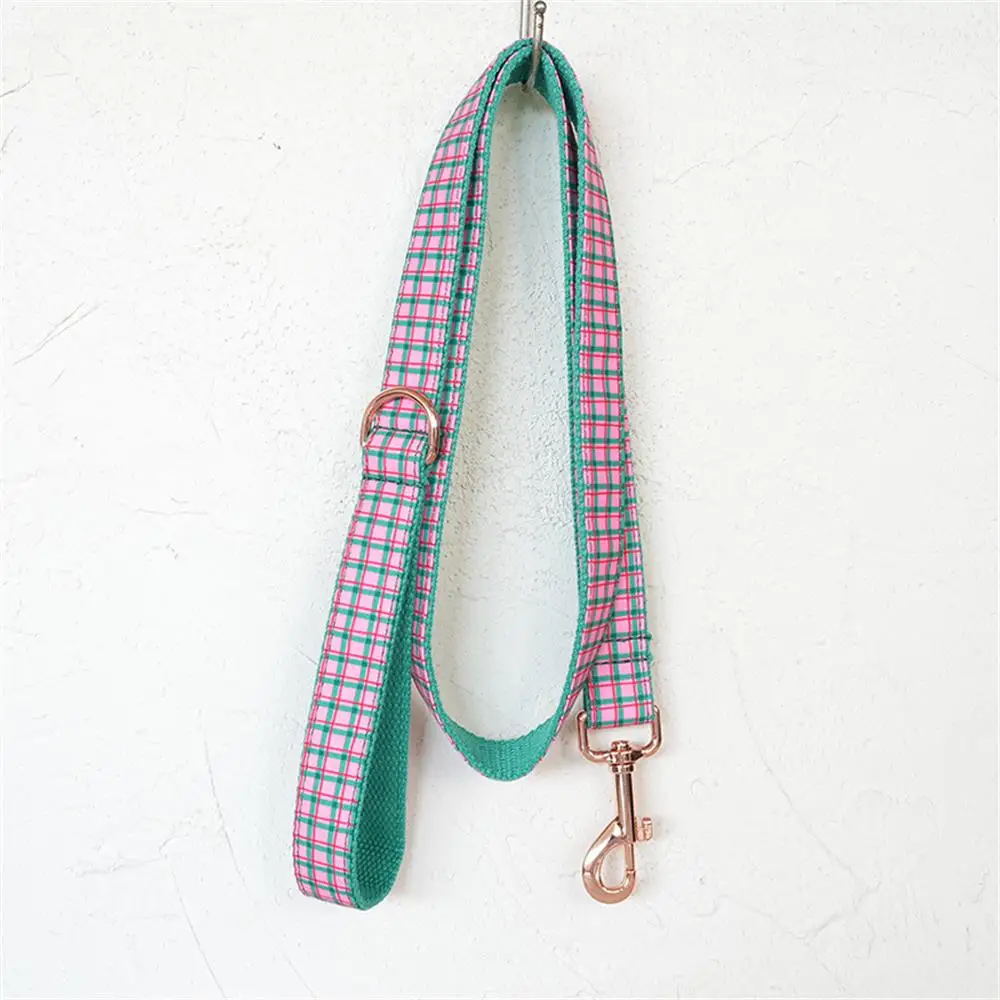Nombre del producto: Collar para perro personalizado con grabado gratuito, correa para mascotas a juego, hebilla de metal con contactos personalizados, Collar para mascotas a cuadros de color verde rosa
