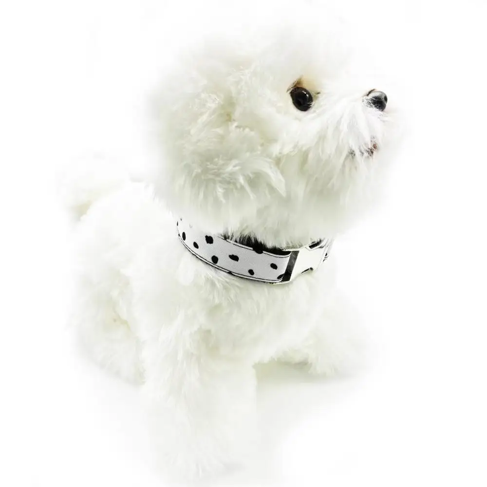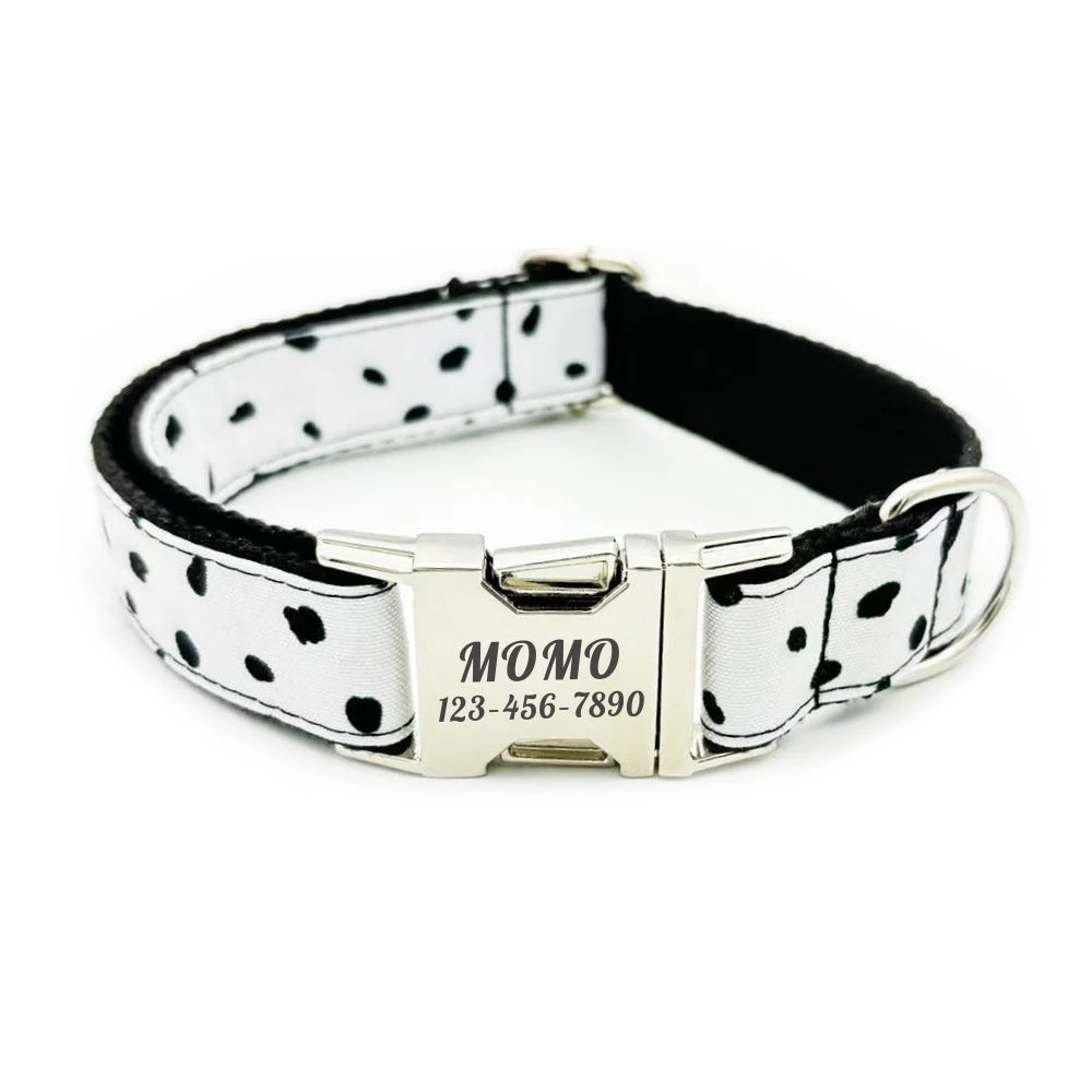 Nombre del producto: Collar personalizado para perros Collar personalizado para mascotas Etiqueta de placa de identificación con grabado gratuito Dálatanos para mascotas Collares para cachorros con puntos negros Correa