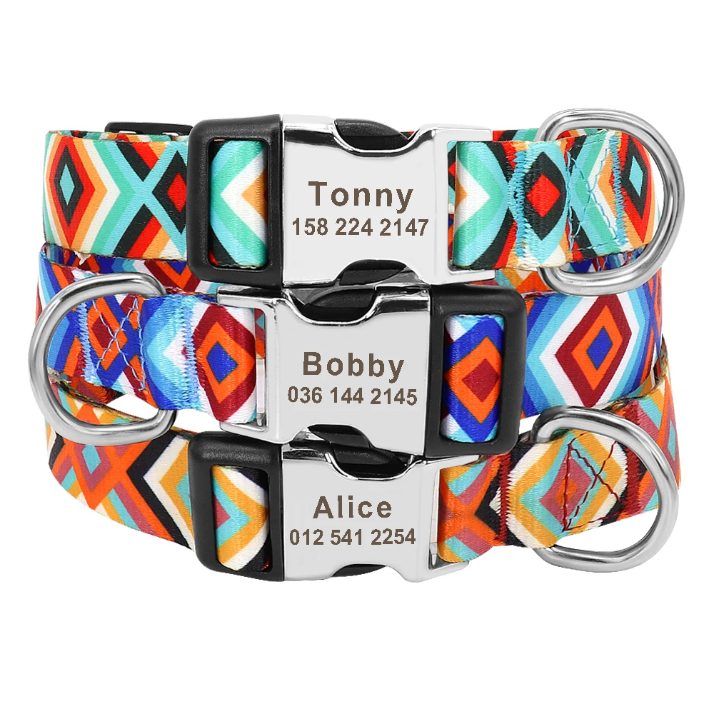 Collar personalizado para perros, Collar personalizado de nailon para mascotas, collares con etiqueta con placa de identificación grabada gratis para perros pequeños, medianos y grandes