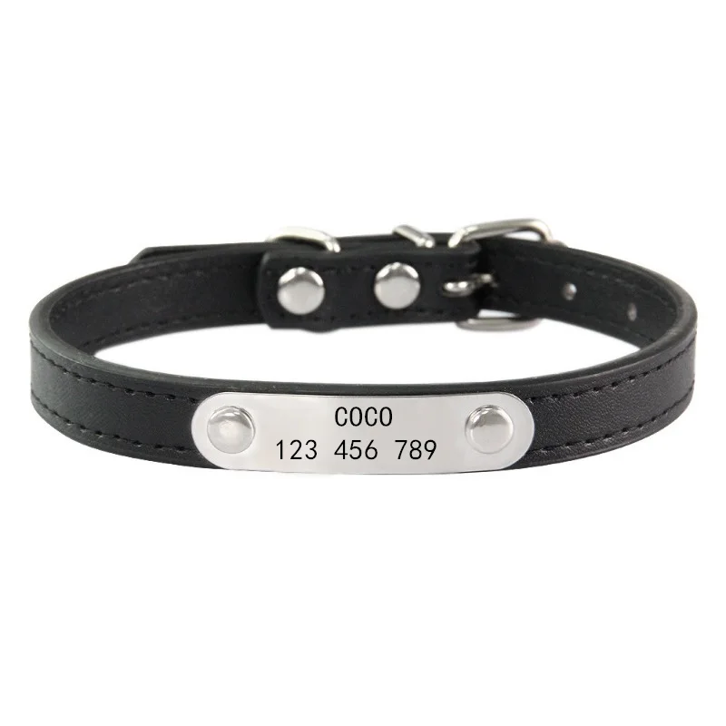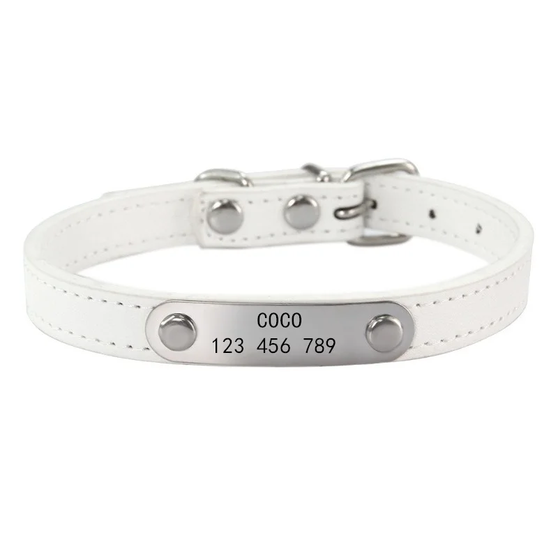 Collar personalizado para perro, etiqueta de identificación tallada con nombre, Collar de cuero PU sólido antipérdida para perros pequeños, medianos y grandes, suministros para cachorros y gatos