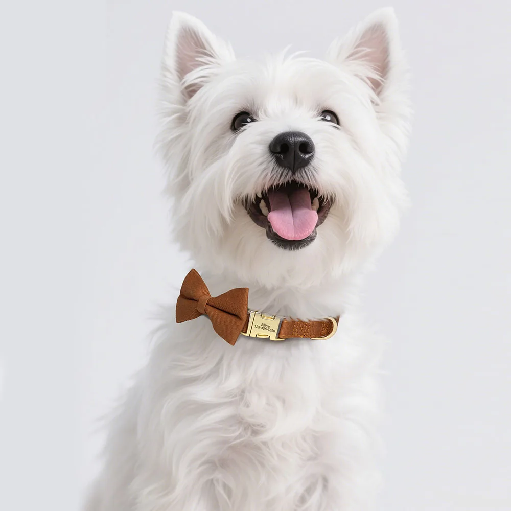 Collar personalizado para perro, collares de nailon con pajarita bonita para perro, Collar con hebilla para mascotas con grabado gratis para perros pequeños y medianos, accesorio con lazo