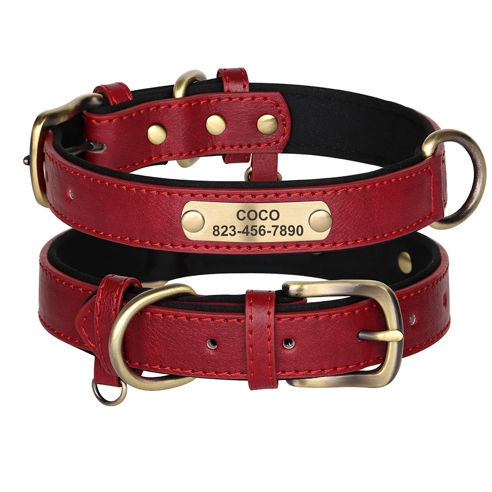 Collar personalizado para perros, placa con identificación de cuero, collares para perros, Collar suave ajustable, grabado gratis para perros pequeños, medianos y grandes