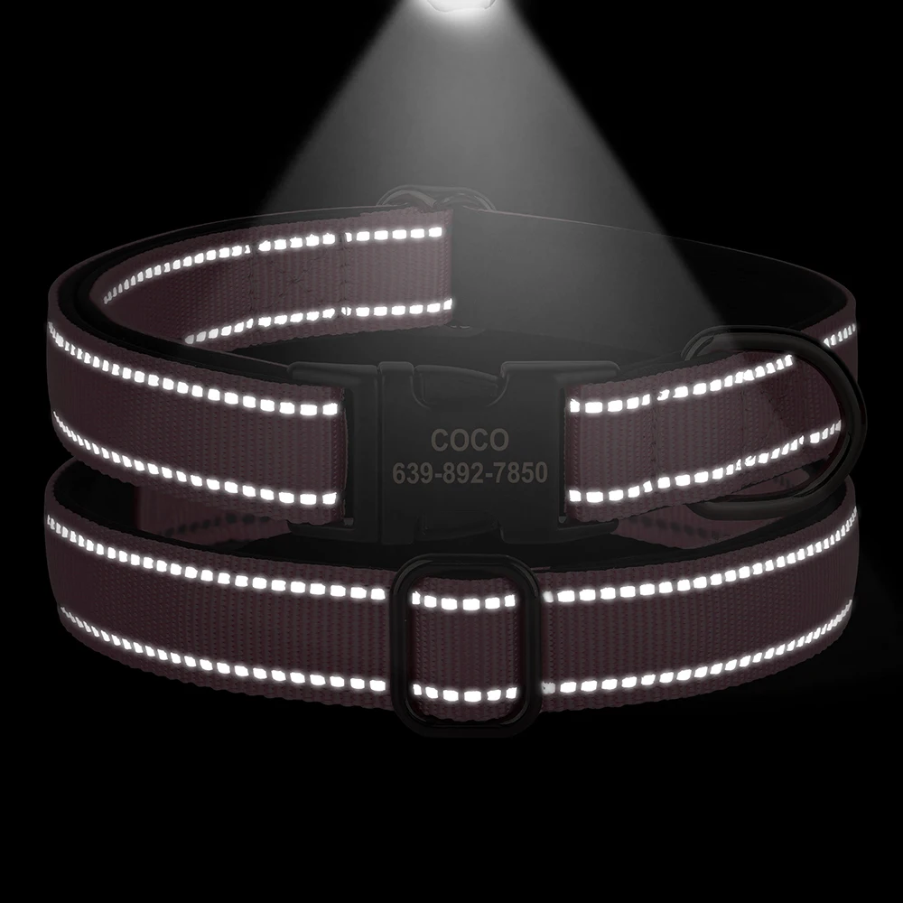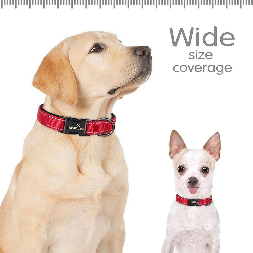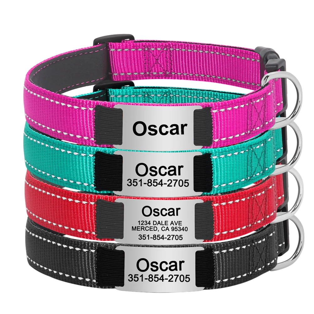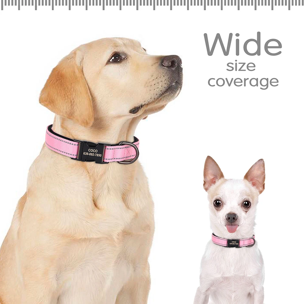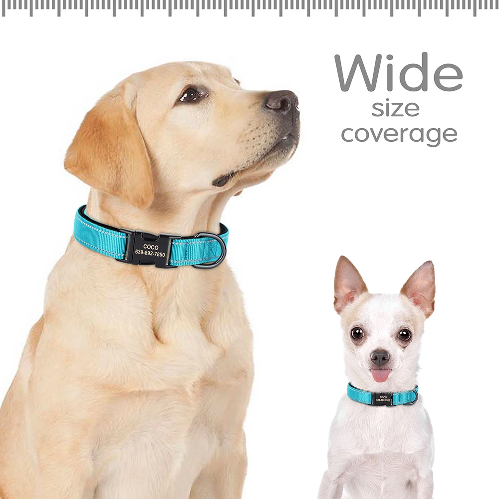 Collar reflectante personalizado para perros, collares de nailon con identificación grabado, Collar acolchado suave para perros, ajustable para perros pequeños, medianos y grandes, Pug