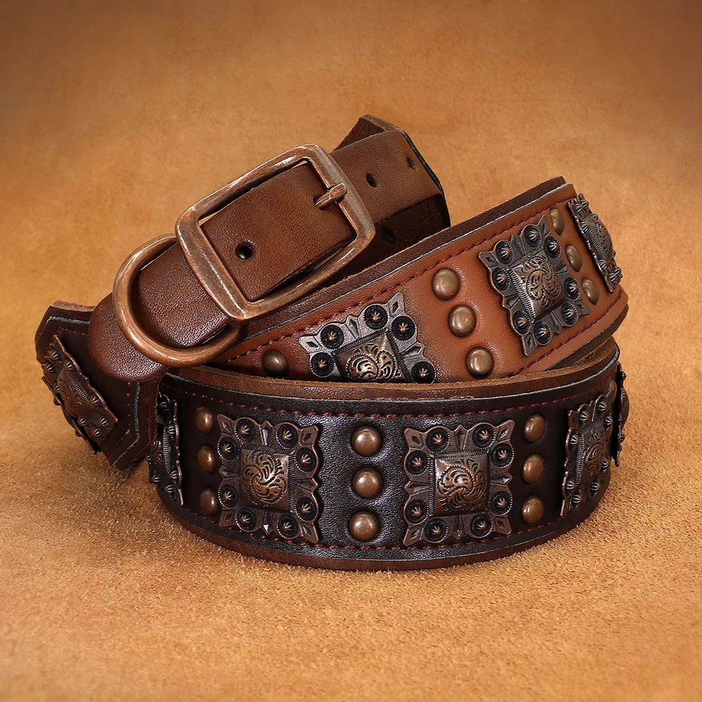 Collar de perro Cool Spikes, collares duraderos de cuero Real para perros, remaches de Metal, accesorios para mascotas, ajustable para perros medianos y grandes Pitbull