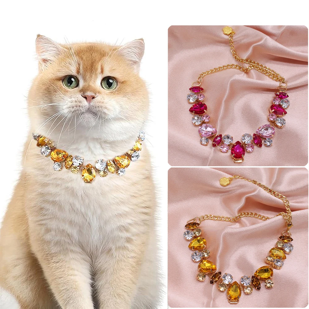 Collar de perro de princesa con diamantes de imitación, collar ajustable para cachorros para perros pequeños y gatos, perfecto para bodas, fotos de fiestas de cumpleaños