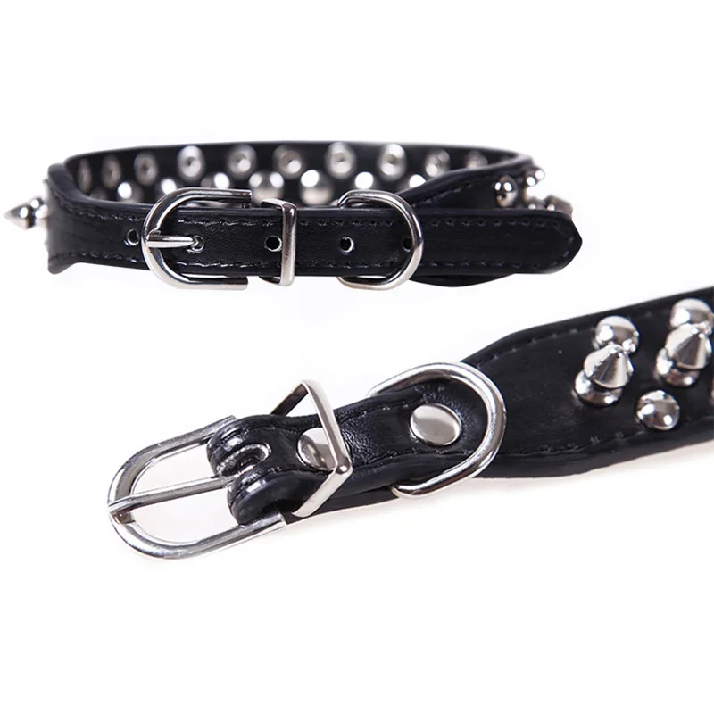 Collar de perro de PU con remaches de punta Punk, Gargantilla ajustable antimordida para mascotas para perros pequeños, medianos y grandes, Bull Terrier, Doberman Pinscher