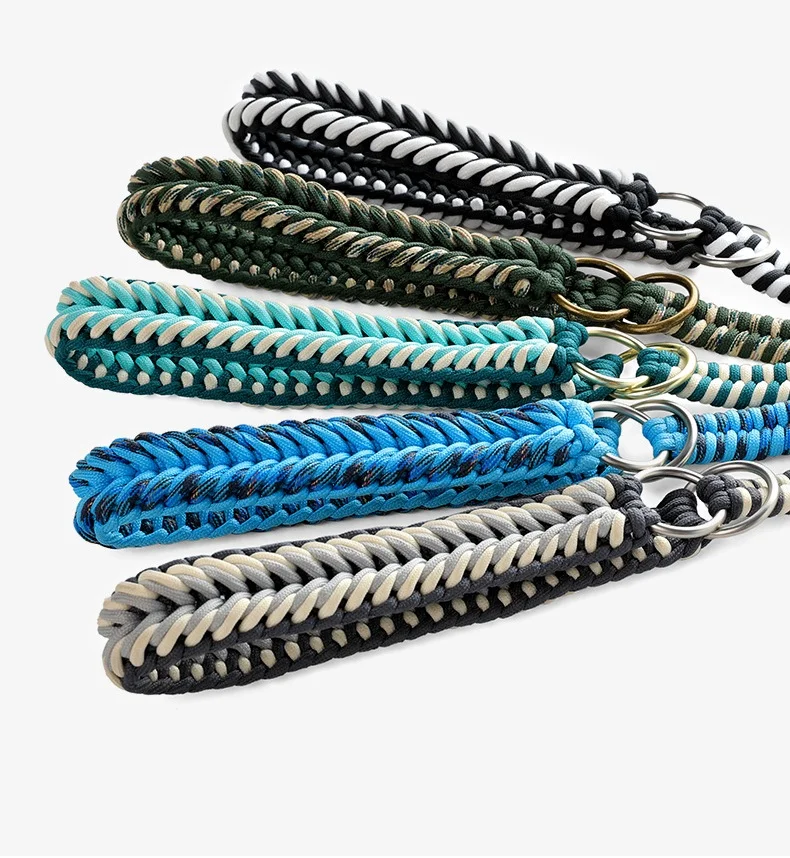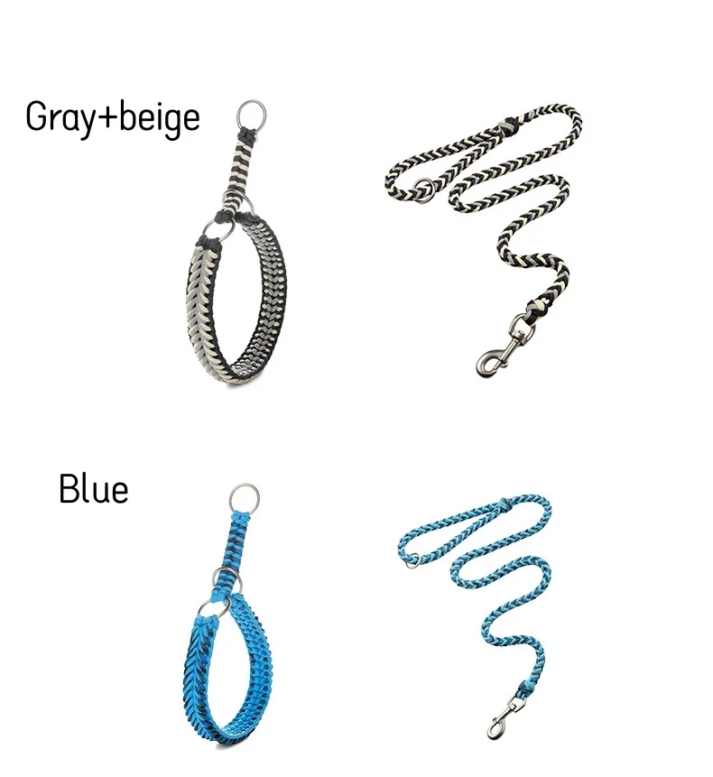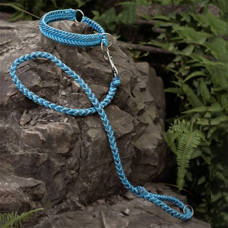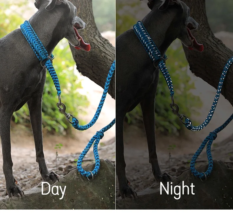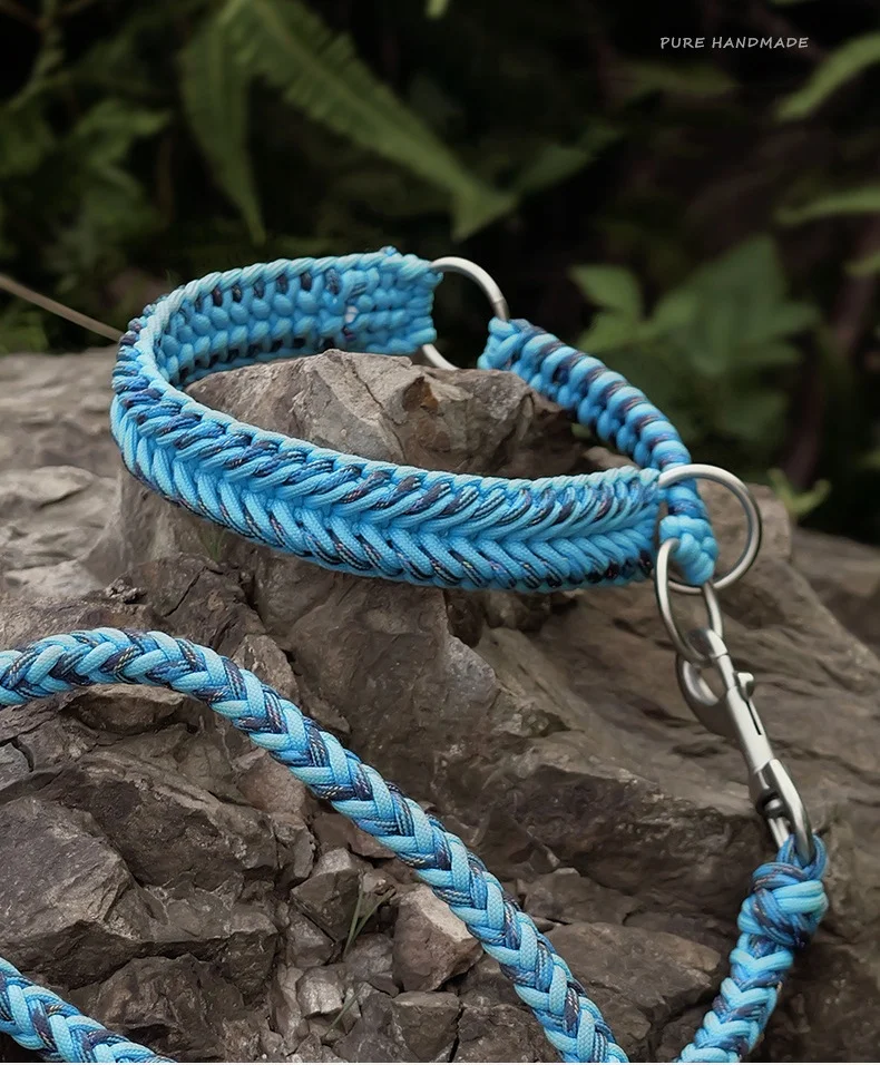 Collar de perro puramente tejido a mano, Collar y correa para mascotas tejidos a mano, correa semi-P, previene el tirón explosivo, collar reflectante para perro