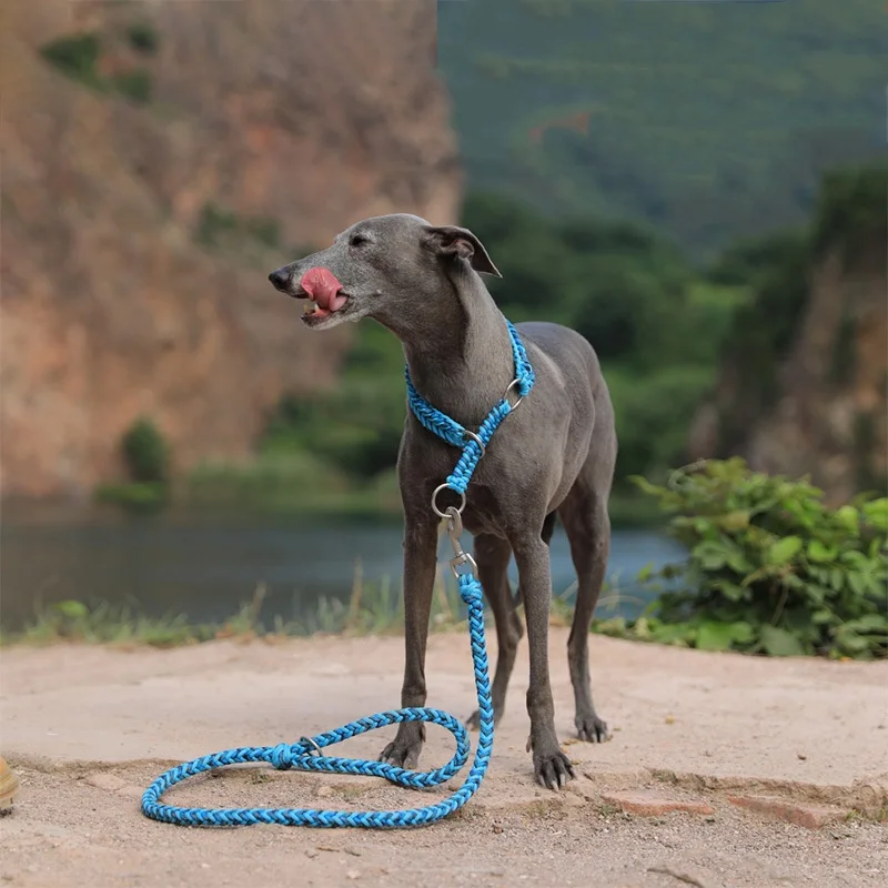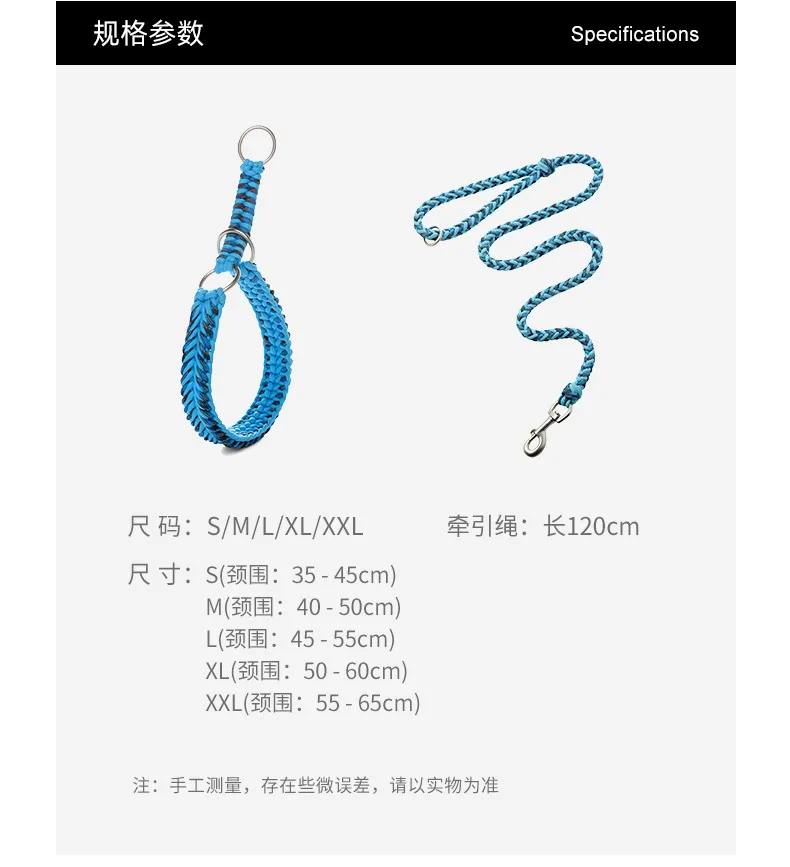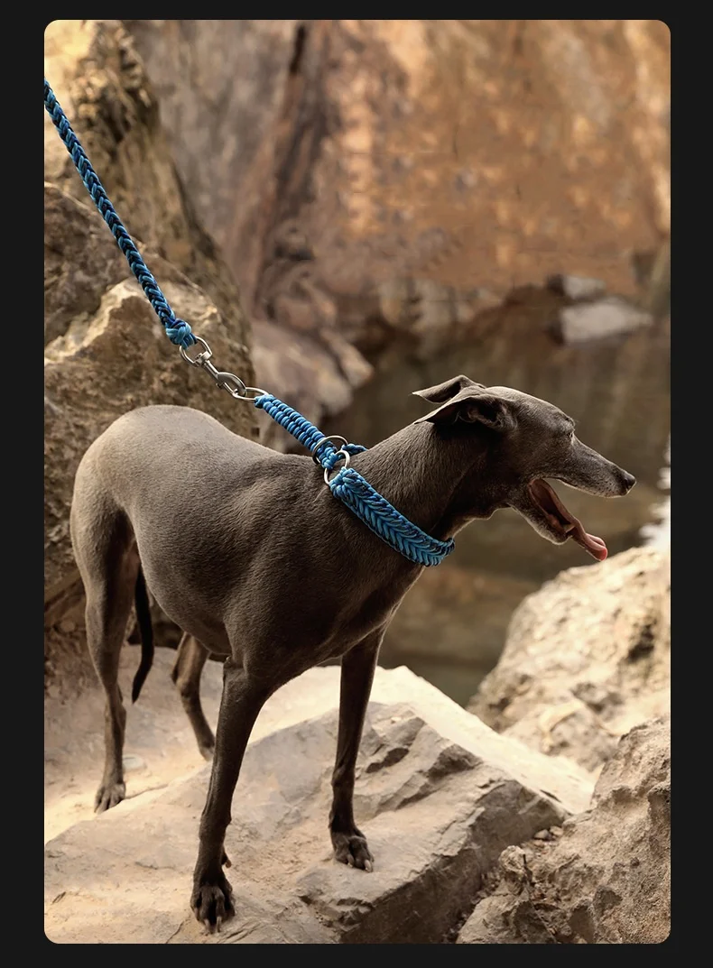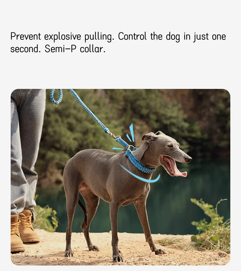 Collar de perro puramente tejido a mano, Collar y correa para mascotas tejidos a mano, correa semi-P, previene el tirón explosivo, collar reflectante para perro