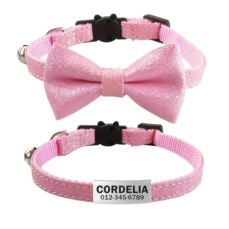 Collar personalizado para perro con purpurina estilo inglés, collares sólidos personalizados para mascotas con lazo, etiqueta con nombre de identificación y grabado, accesorios para mascotas