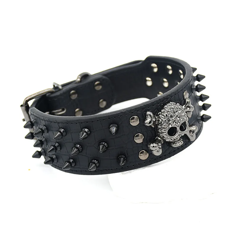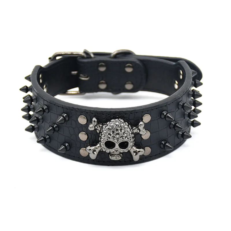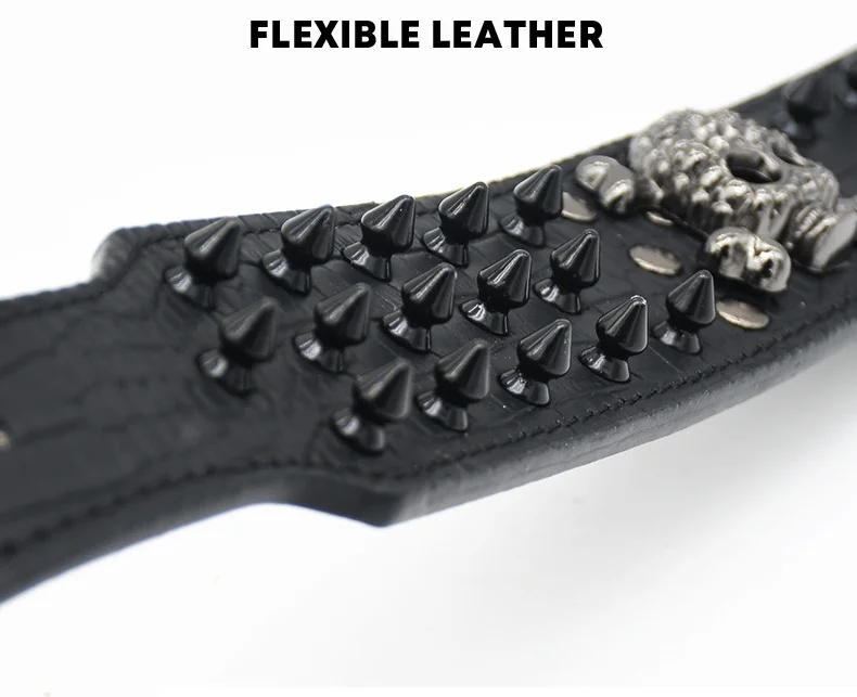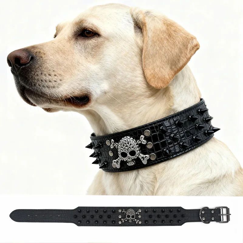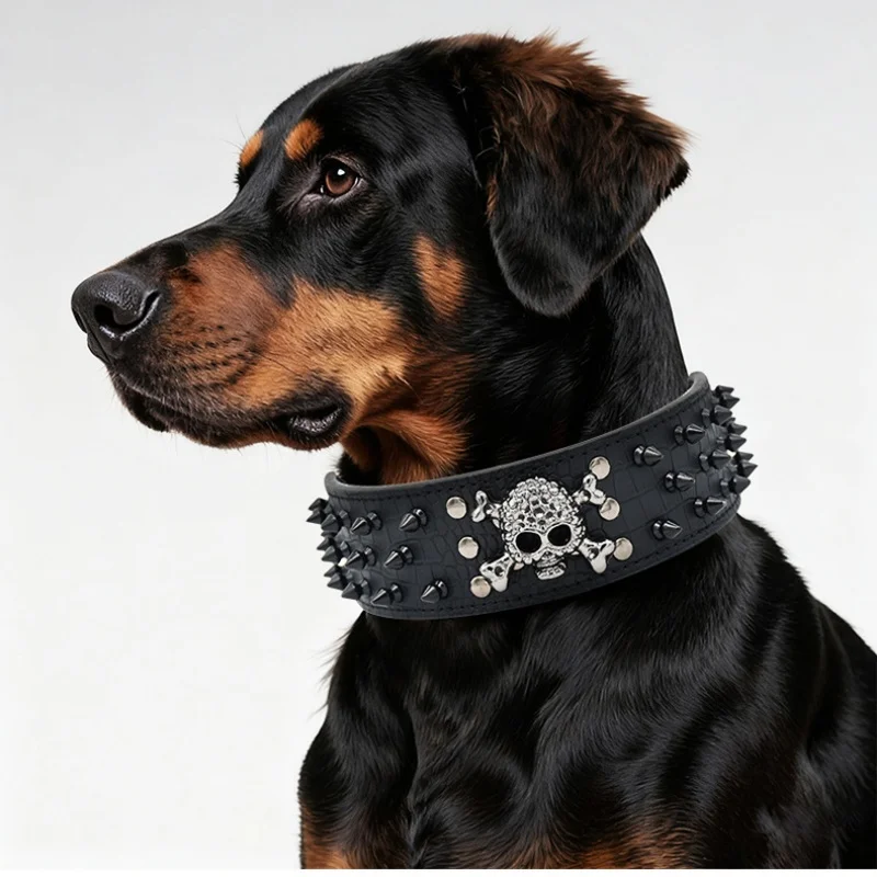 Collar de perro con remache de calavera resistente a mordeduras para razas grandes, Collar de remache para perro de estilo atrevido de cuero PU, Collar ajustable para caminar para perros