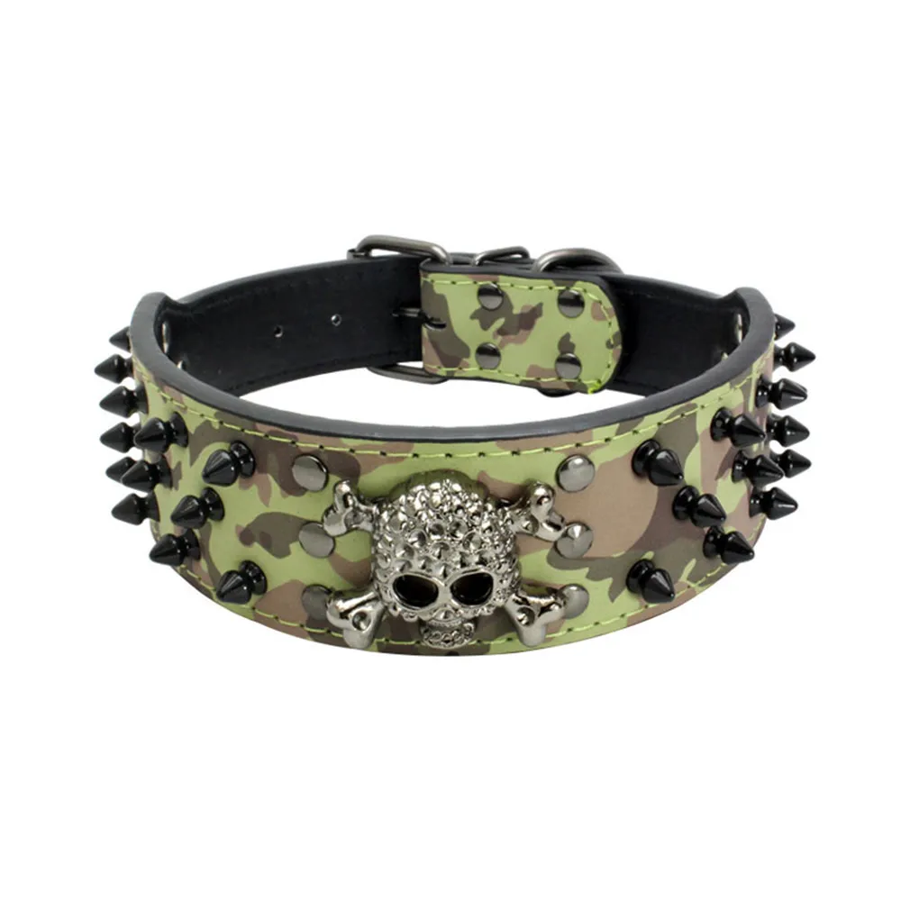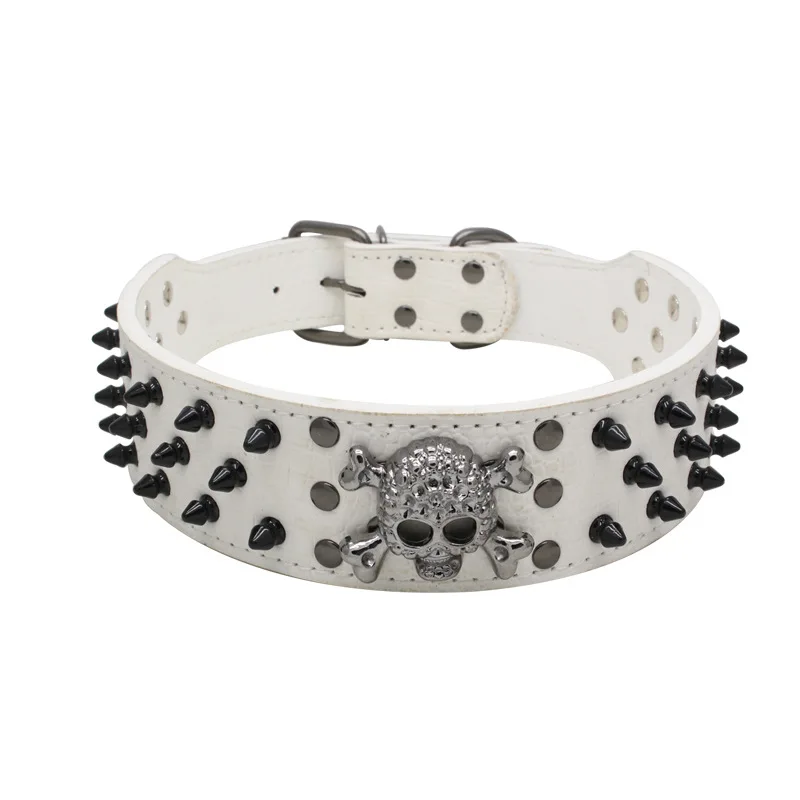 Collar de perro con tachuelas de calavera negra gótica de Halloween y juego de correa de PU – Anti masticable para razas medianas y grandes, Bulldog Francés