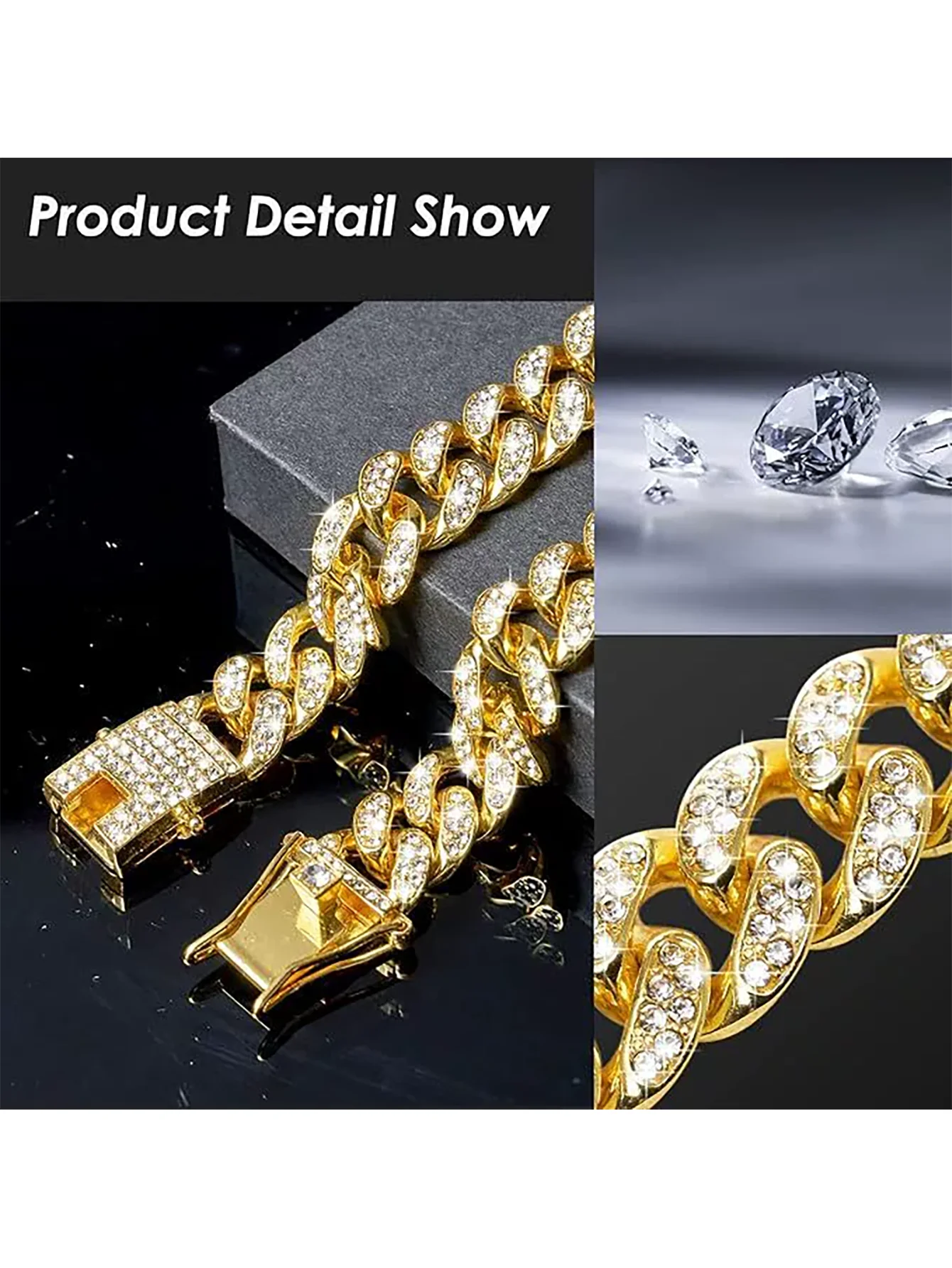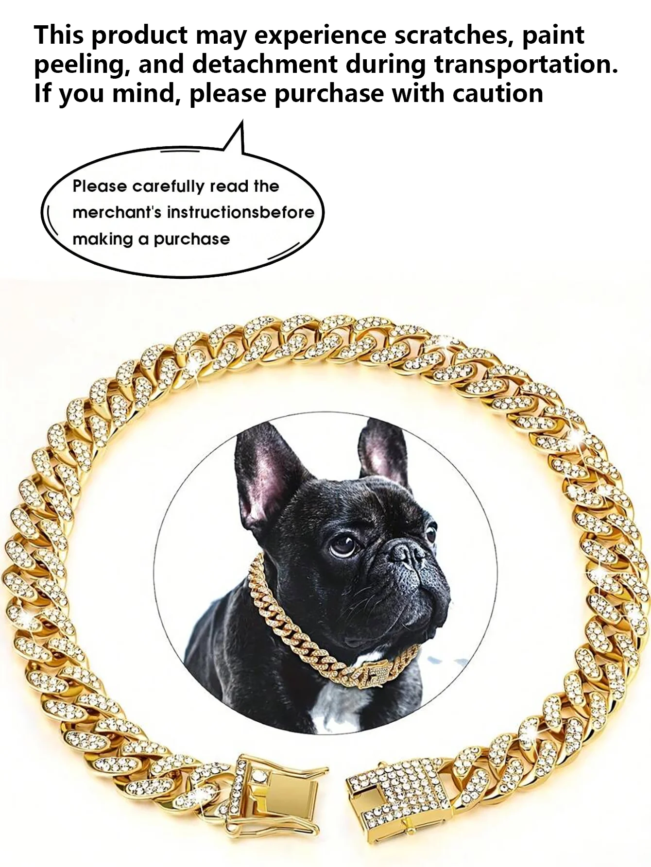 Collar de perro con tachuelas de diamantes con cadena de metal y diseño de hebilla de seguridad, collar de estilo punk personalizado, collar de perro, cadena de metal para gato, collar de cristal de diamante completo para mascotas, joyería, accesorios de moda para mascotas