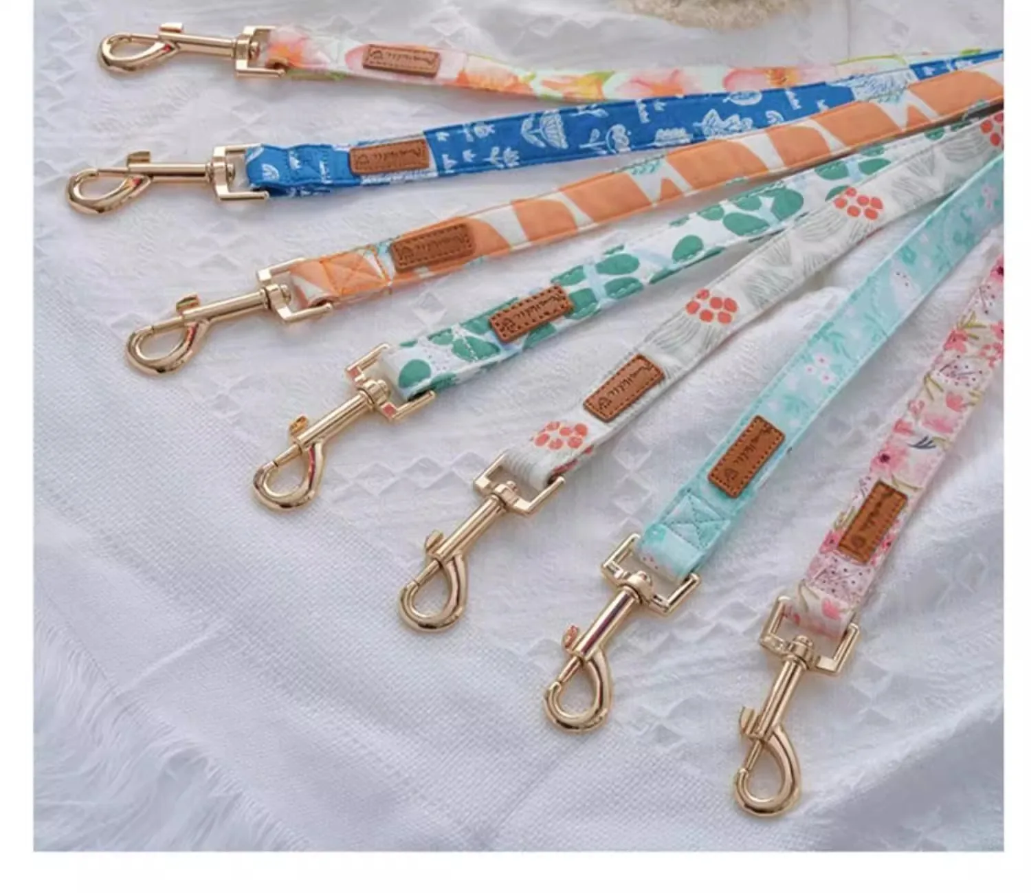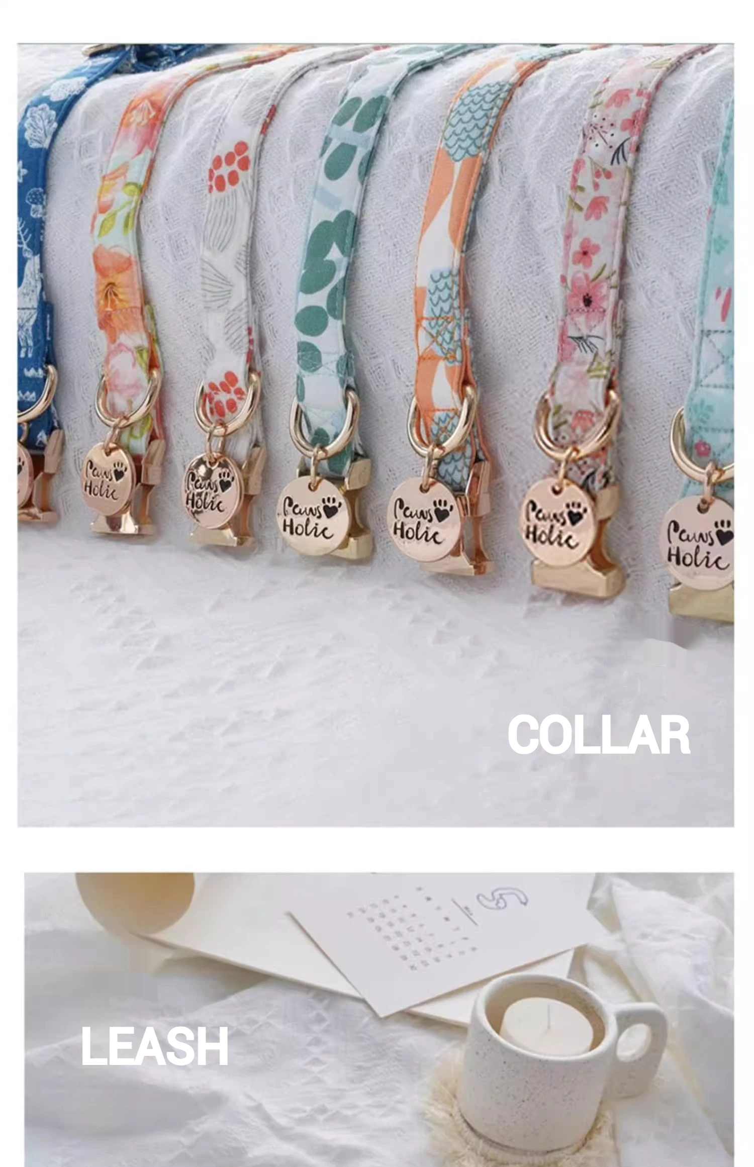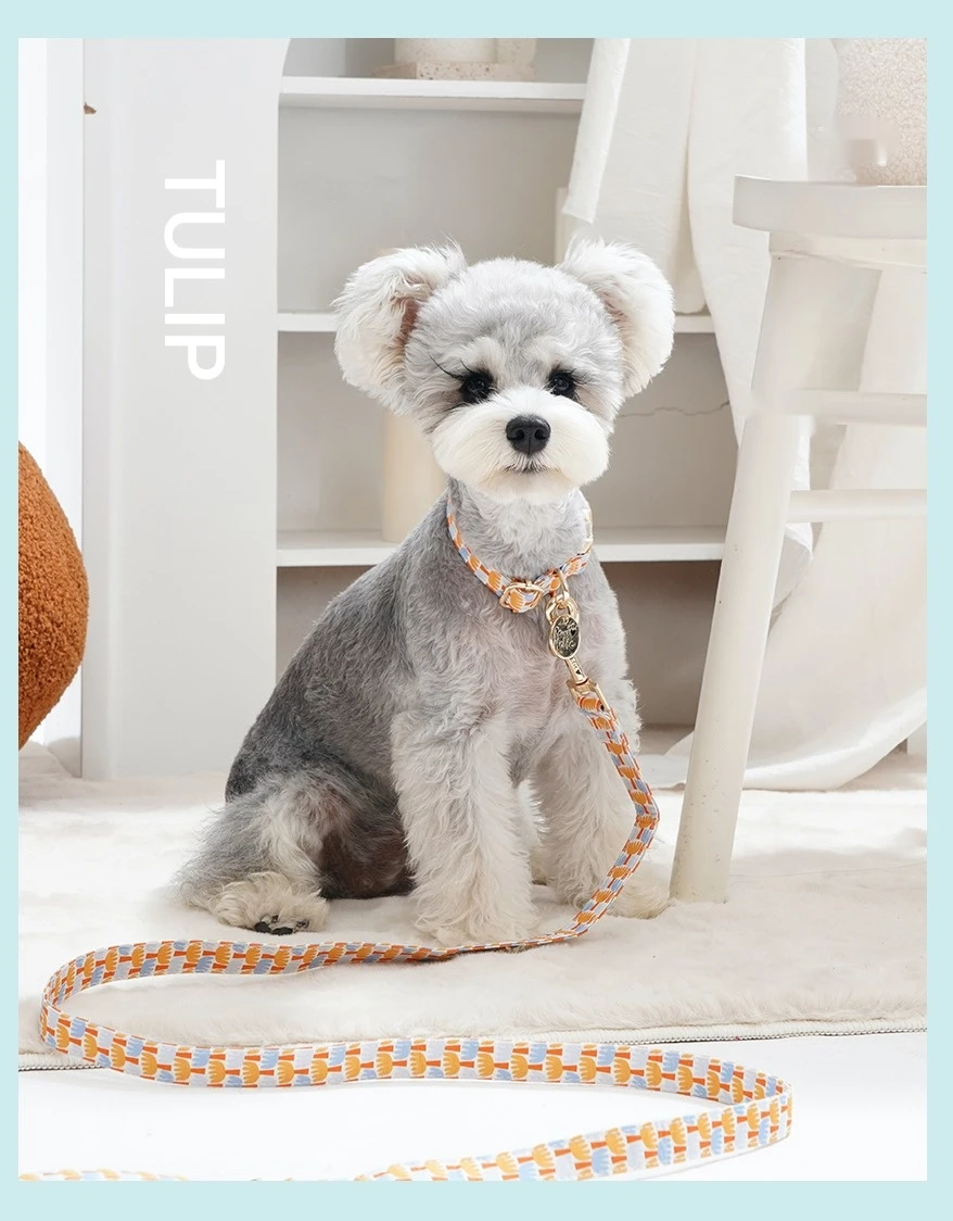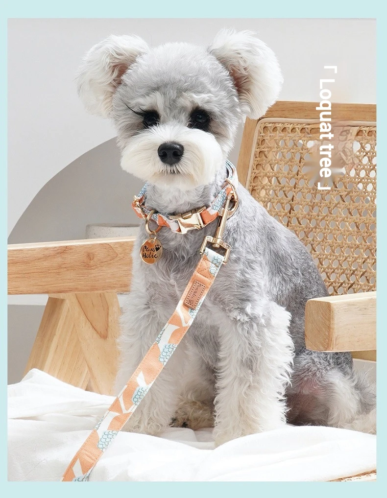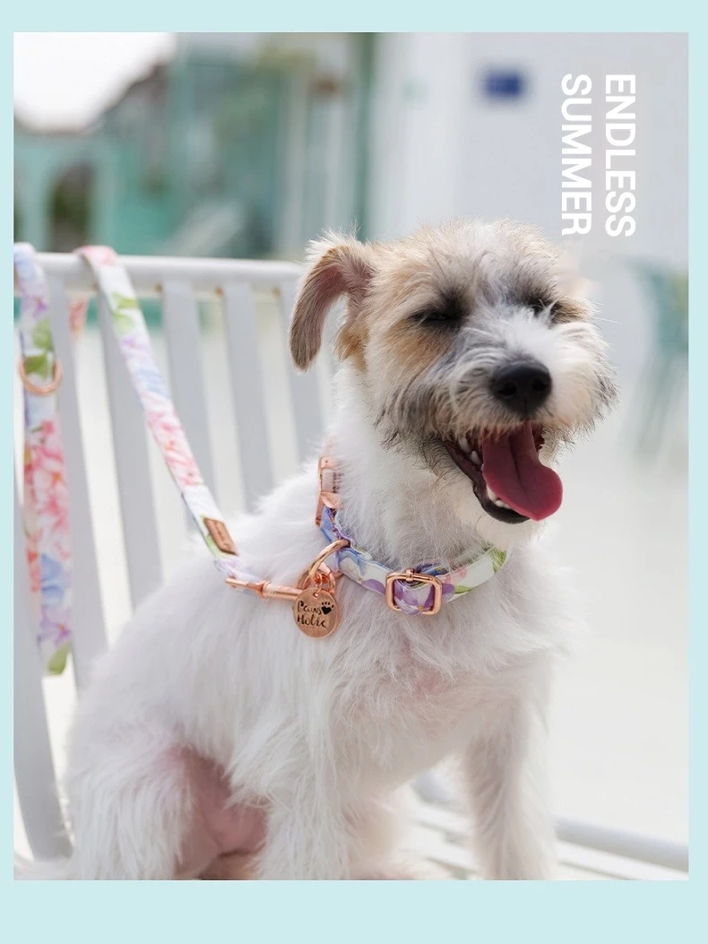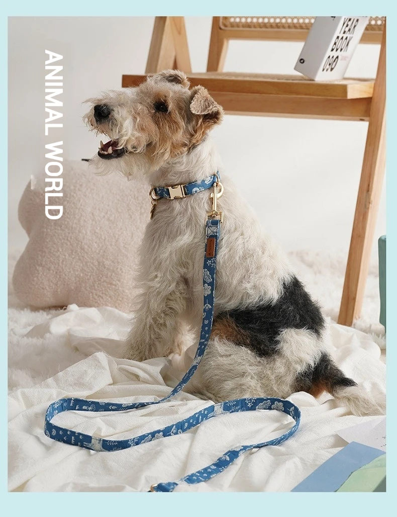 🌟 1. Elegante collar y correa de la serie de algodón y estampado: Confeccionados con tela impresa importada y con herrajes llamativos, estos accesorios ofrecen un aspecto sofisticado y moderno para su mascota.