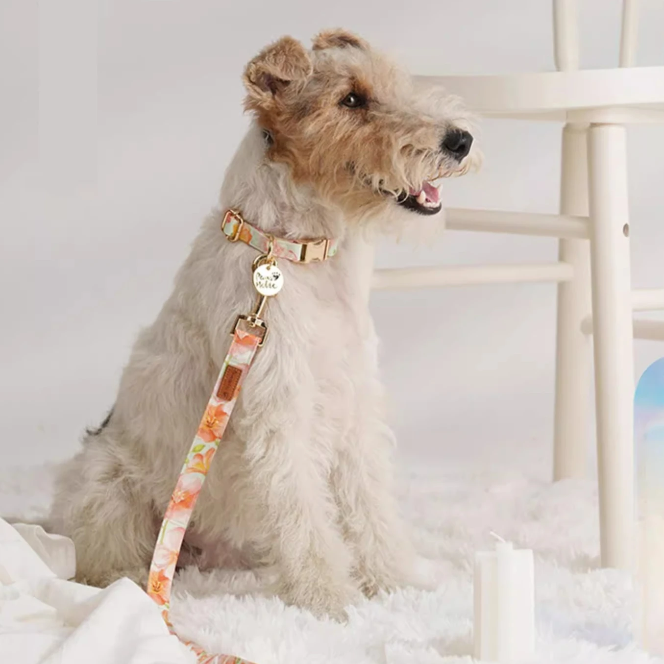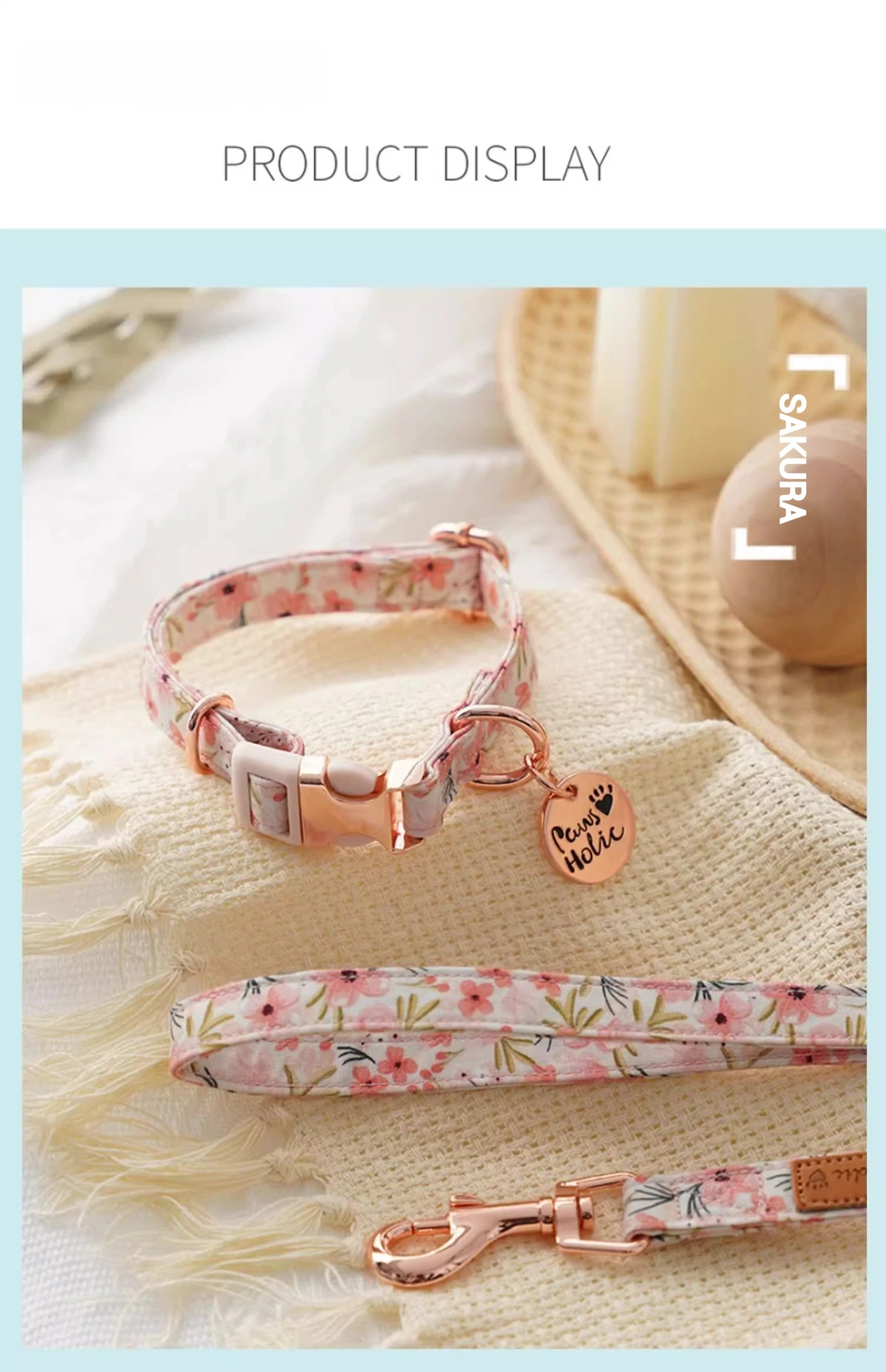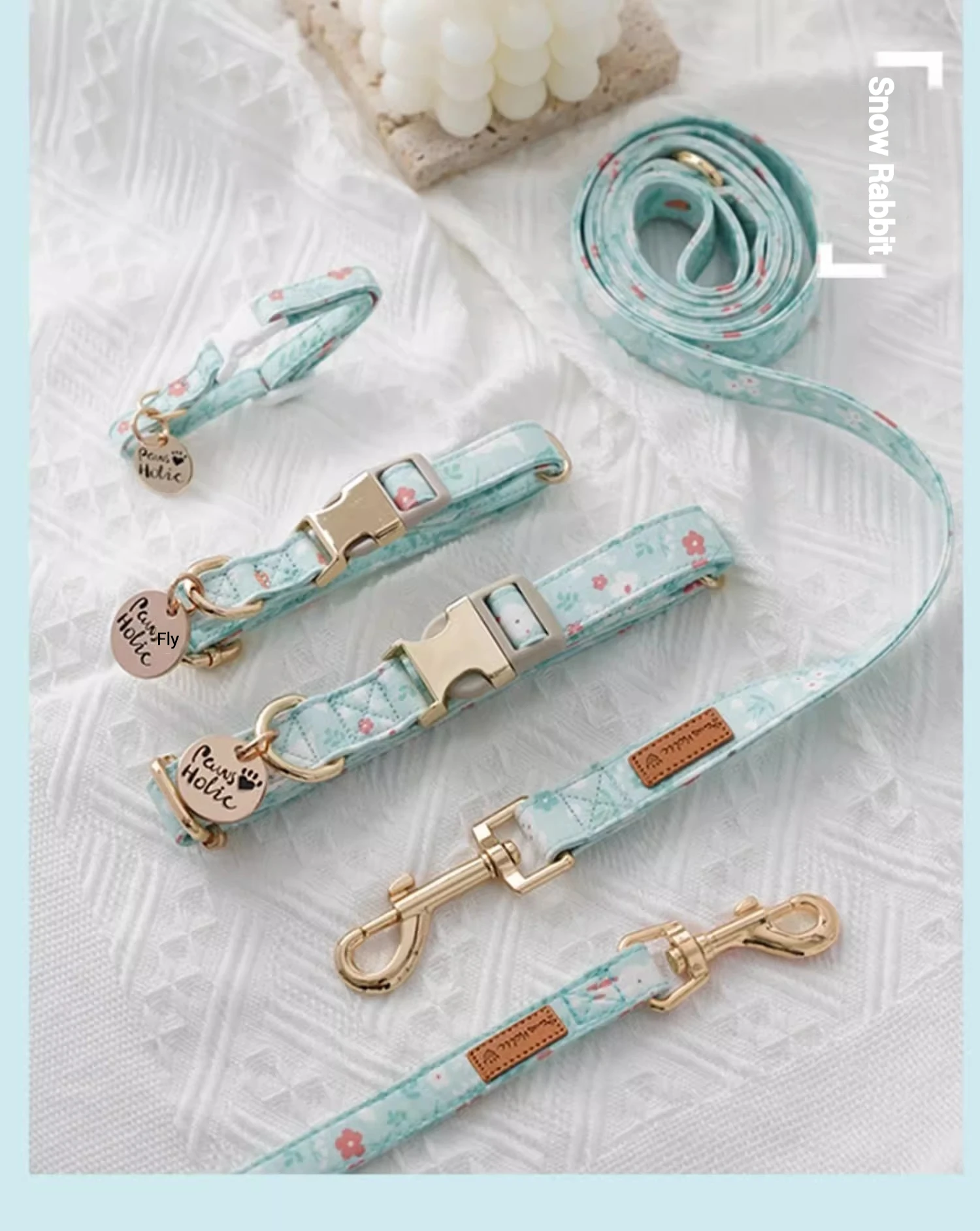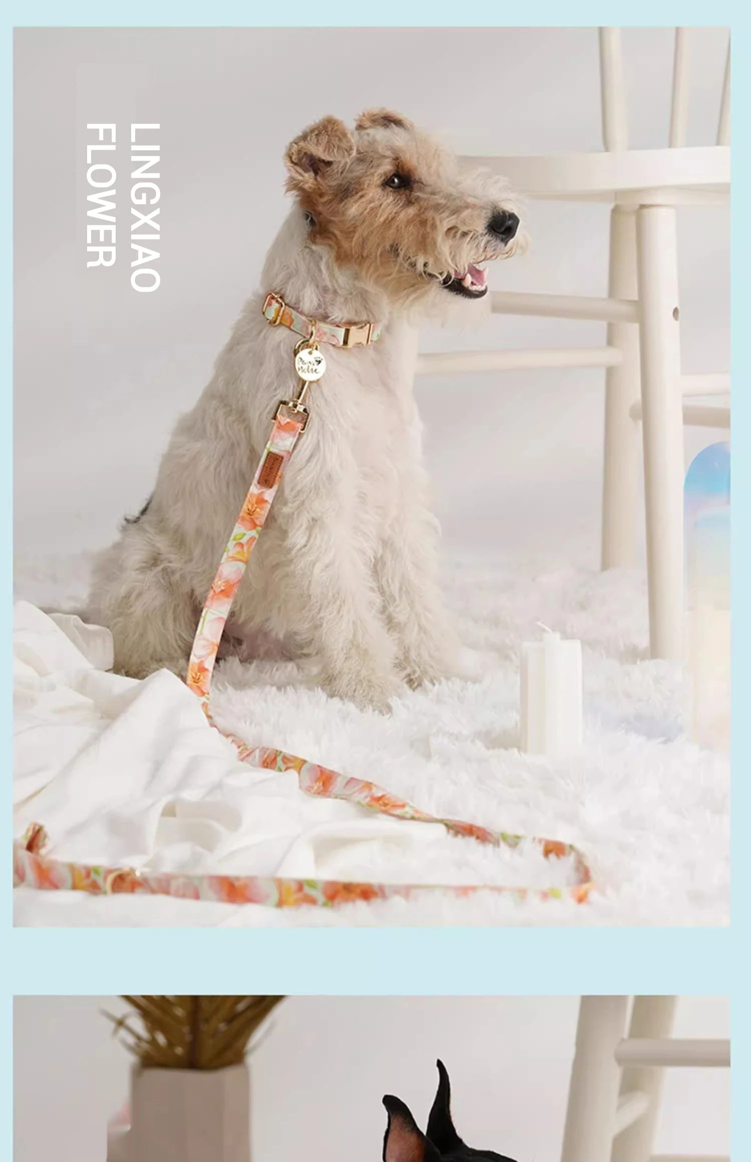 🌟 1. Elegante collar y correa de la serie de algodón y estampado: Confeccionados con tela impresa importada y con herrajes llamativos, estos accesorios ofrecen un aspecto sofisticado y moderno para su mascota.